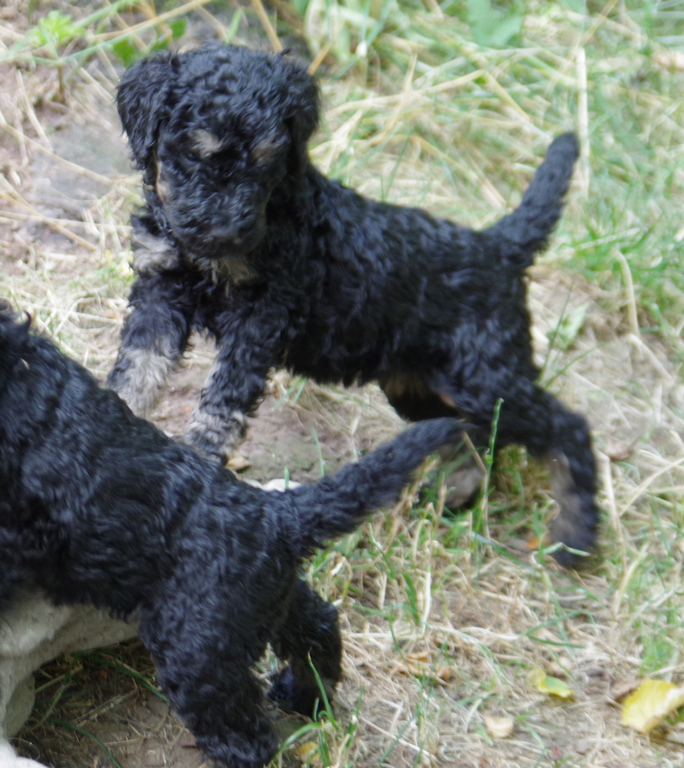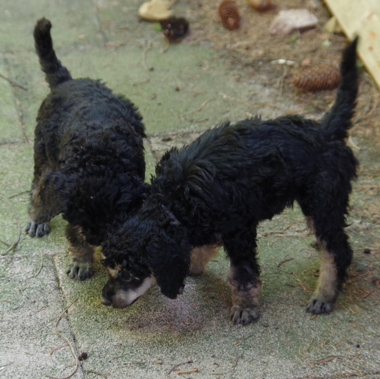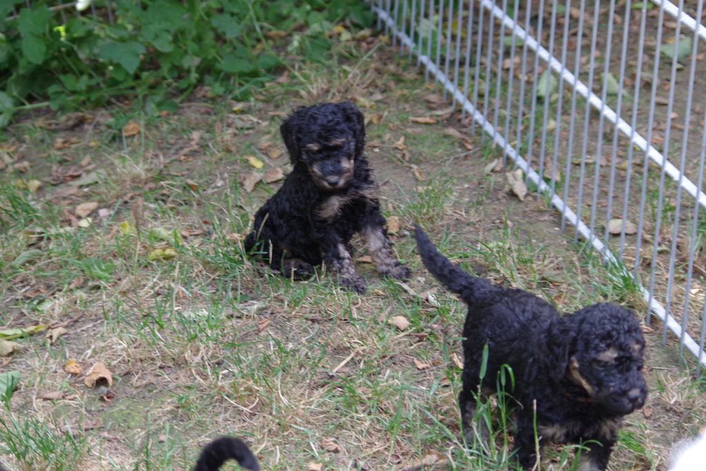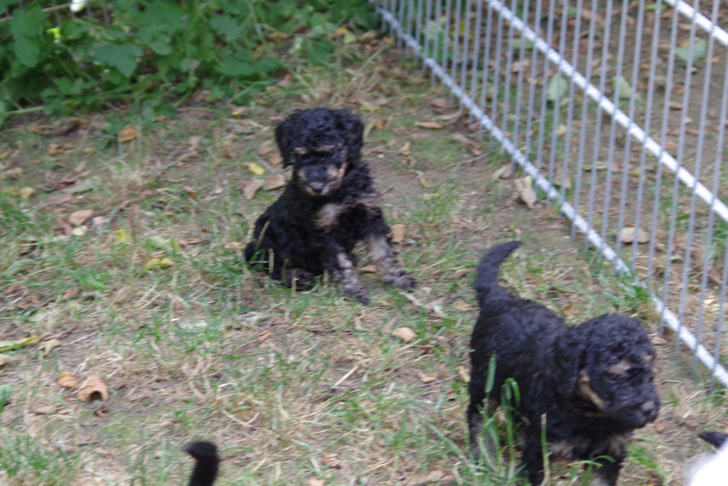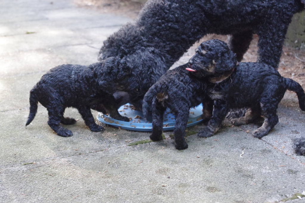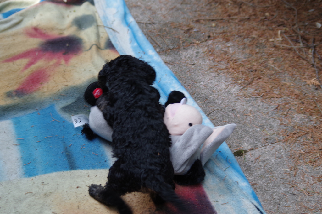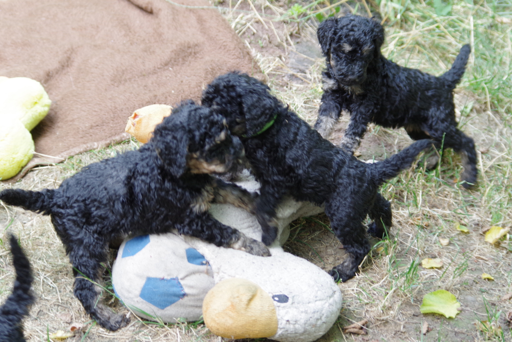 die 4 Wochen alten Welpen erkunden den singenden Esel :))