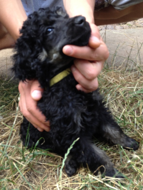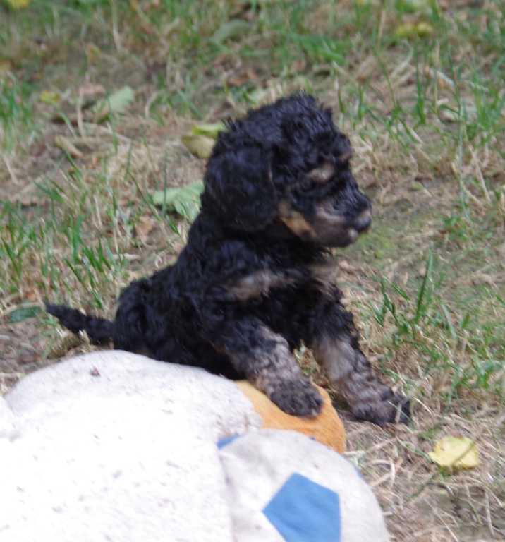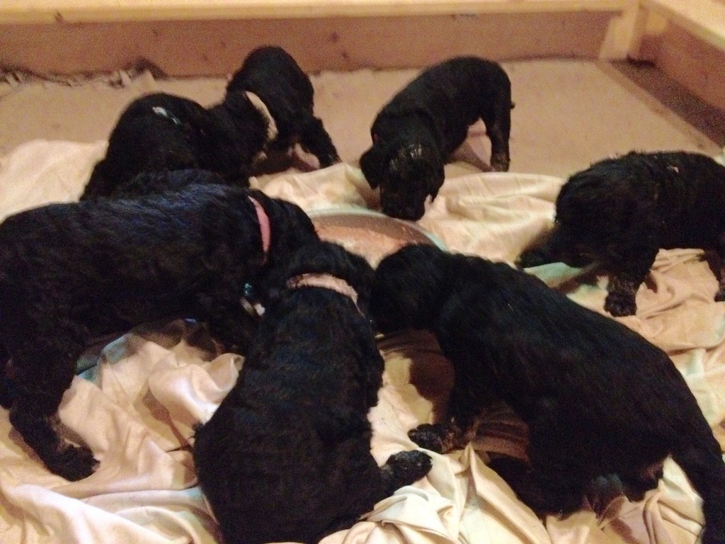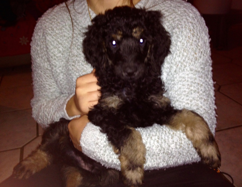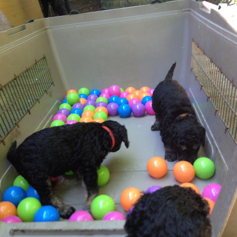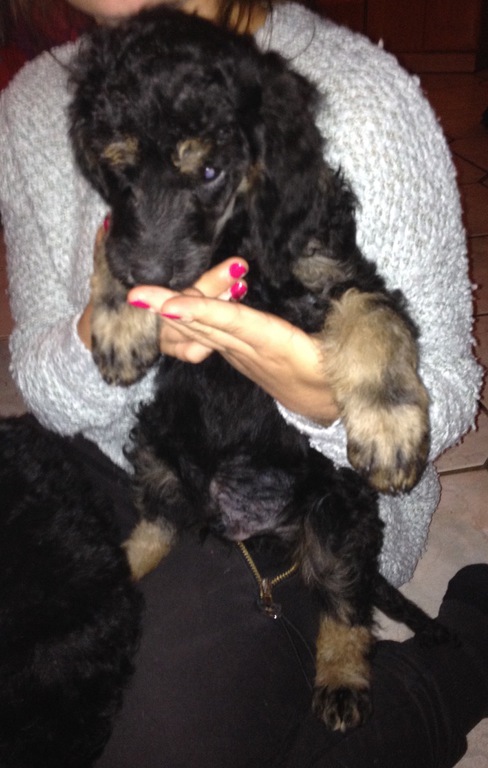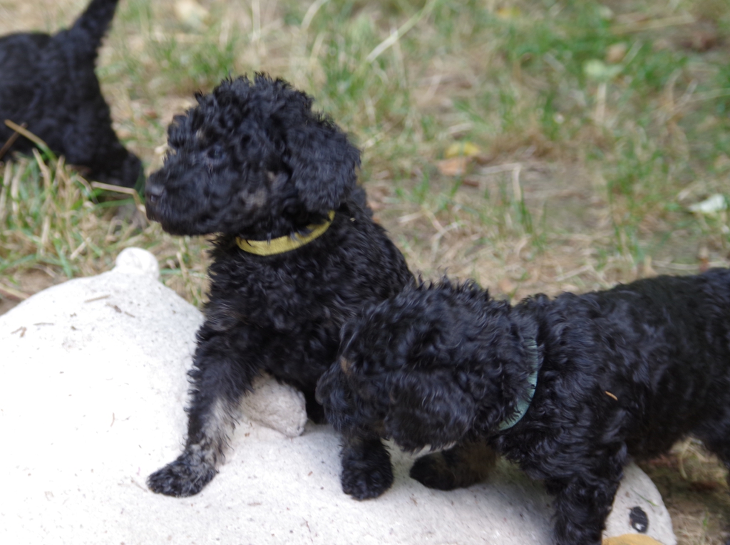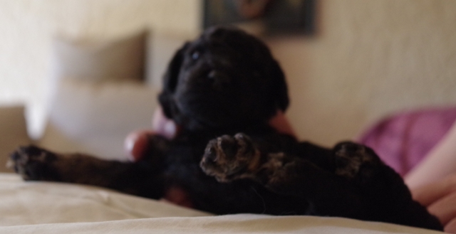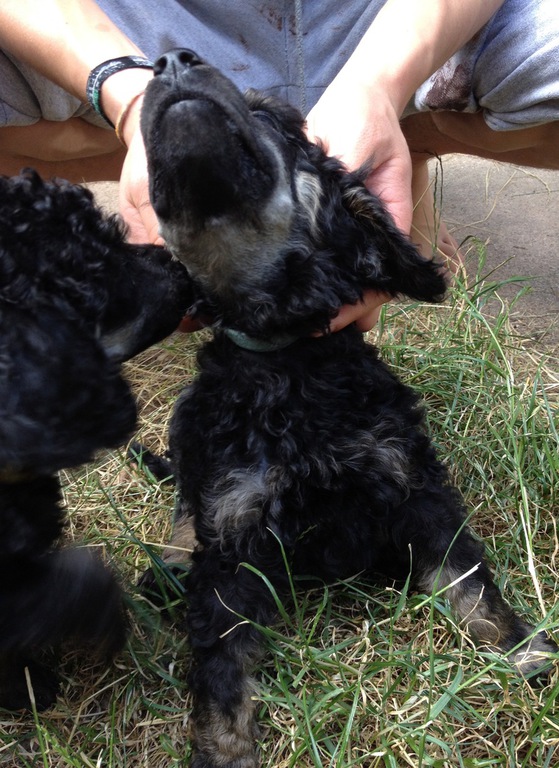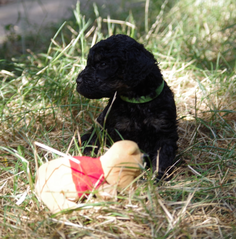 die 4 Wochen alten Welpen erkunden den singenden Esel :))