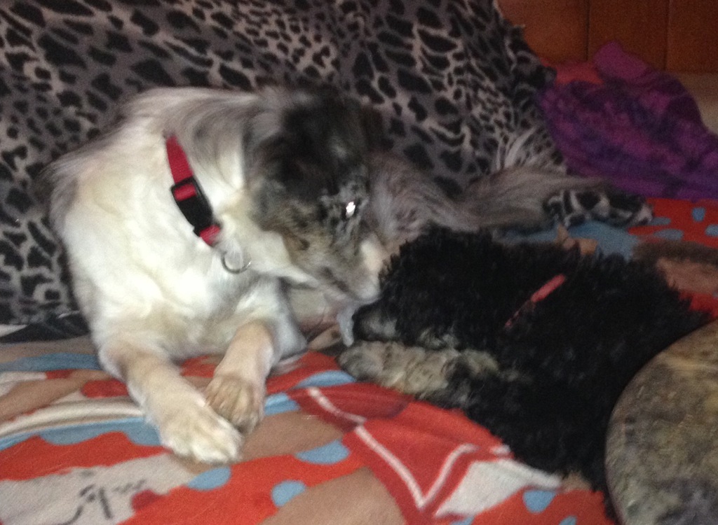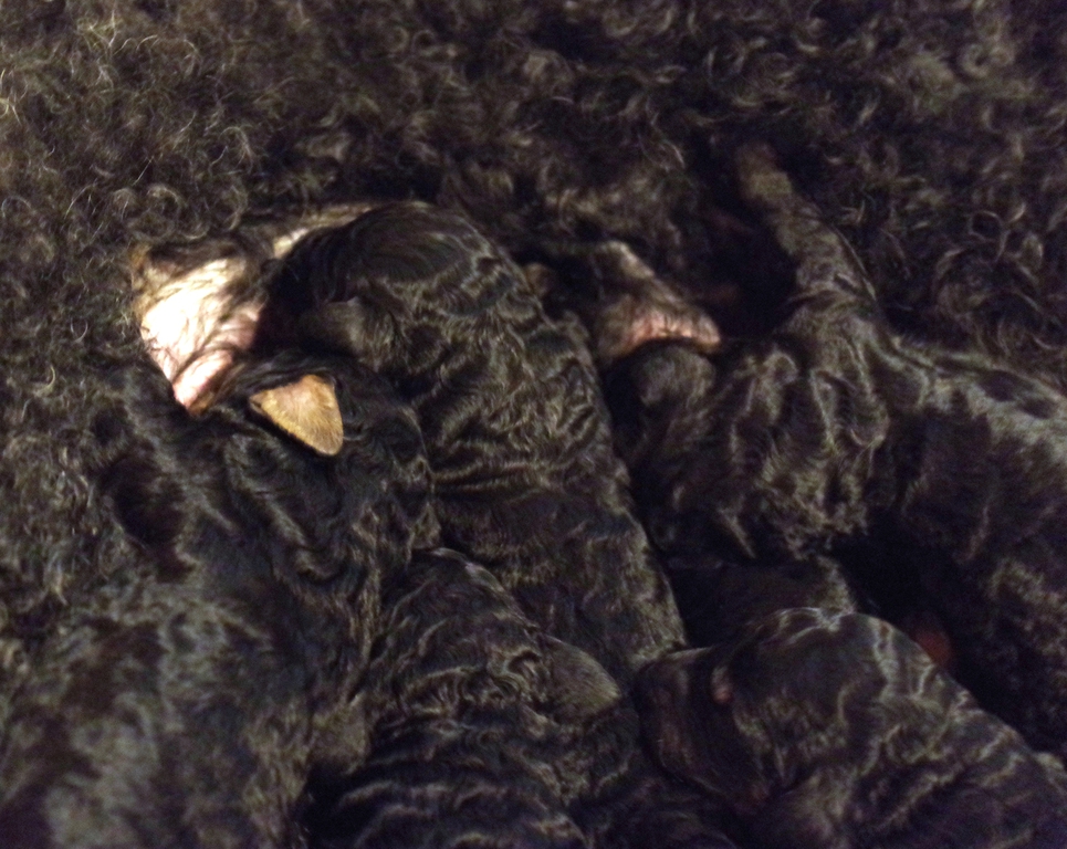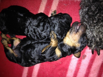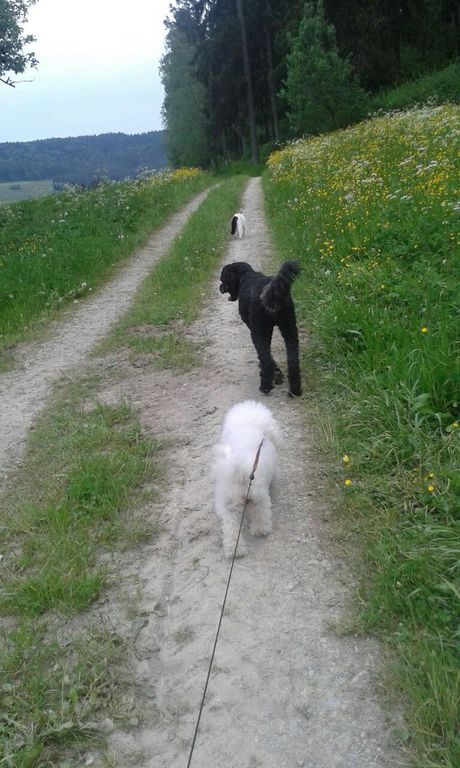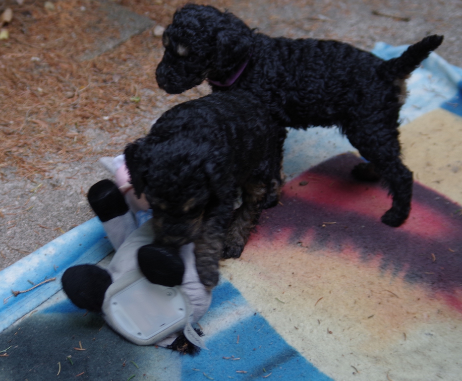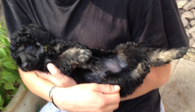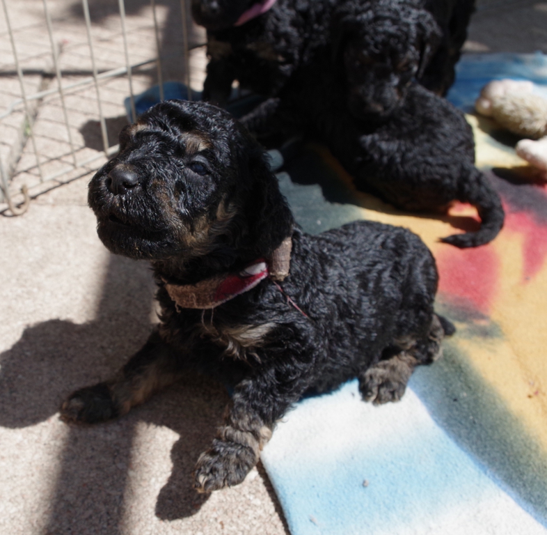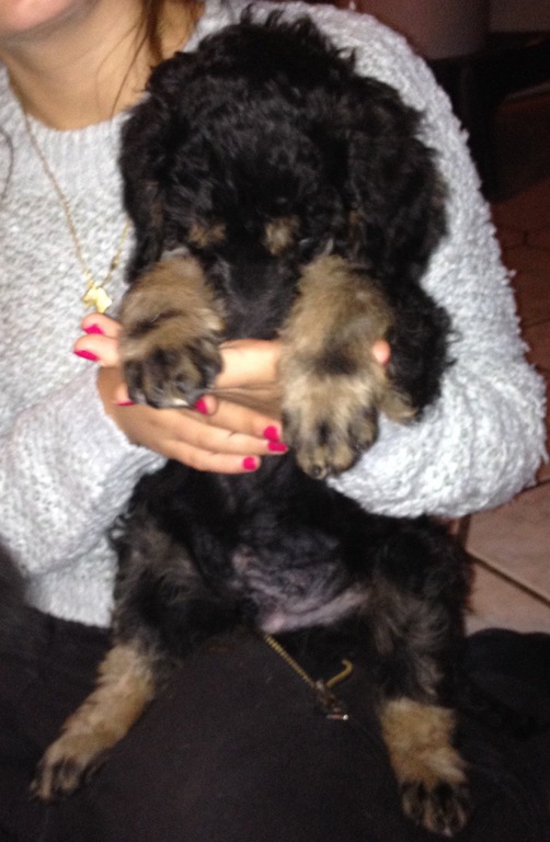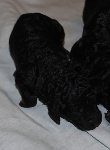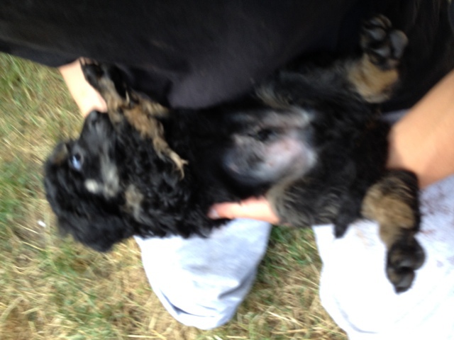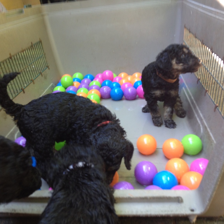 die 4 Wochen alten Welpen erkunden den singenden Esel :))