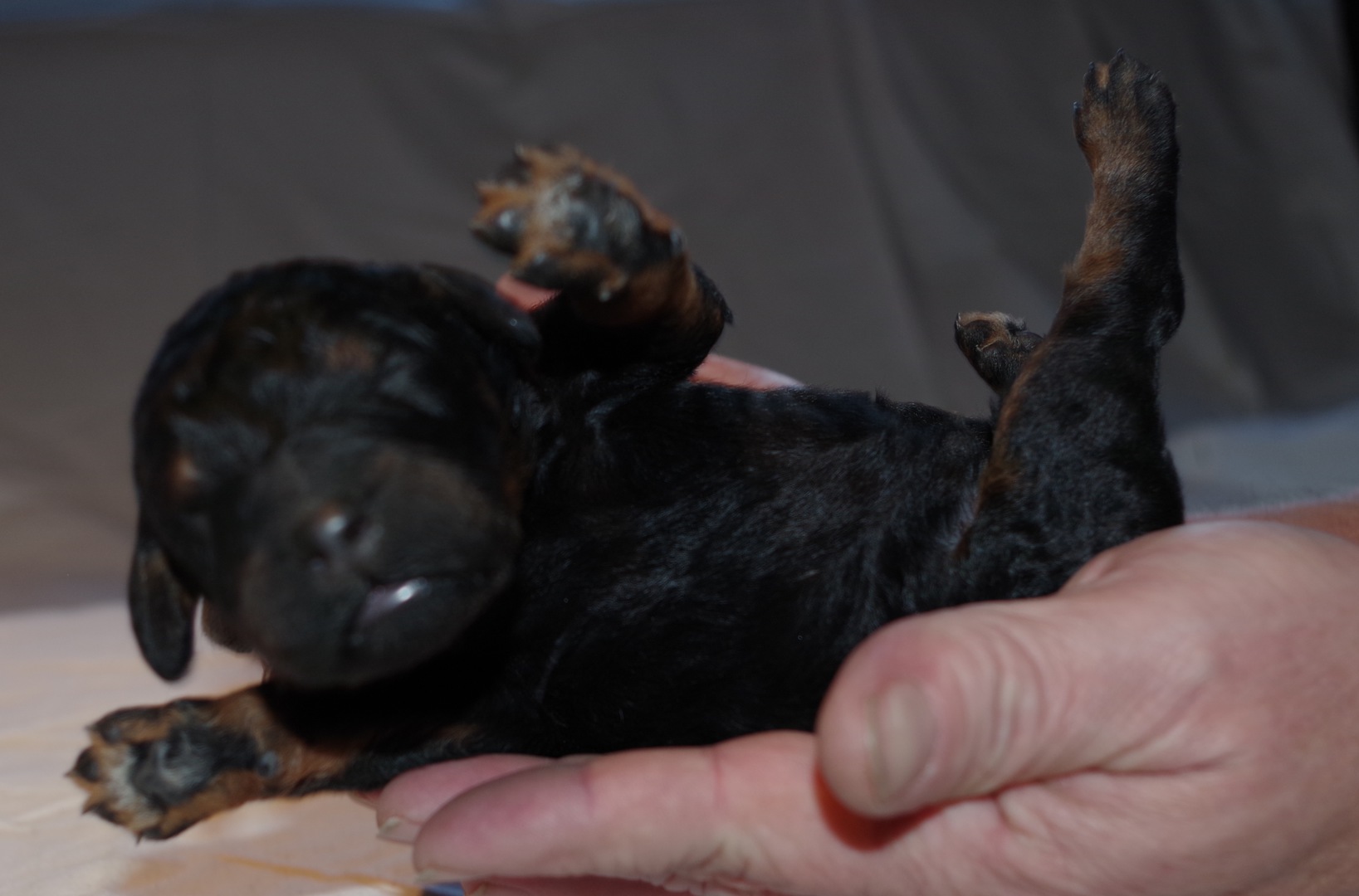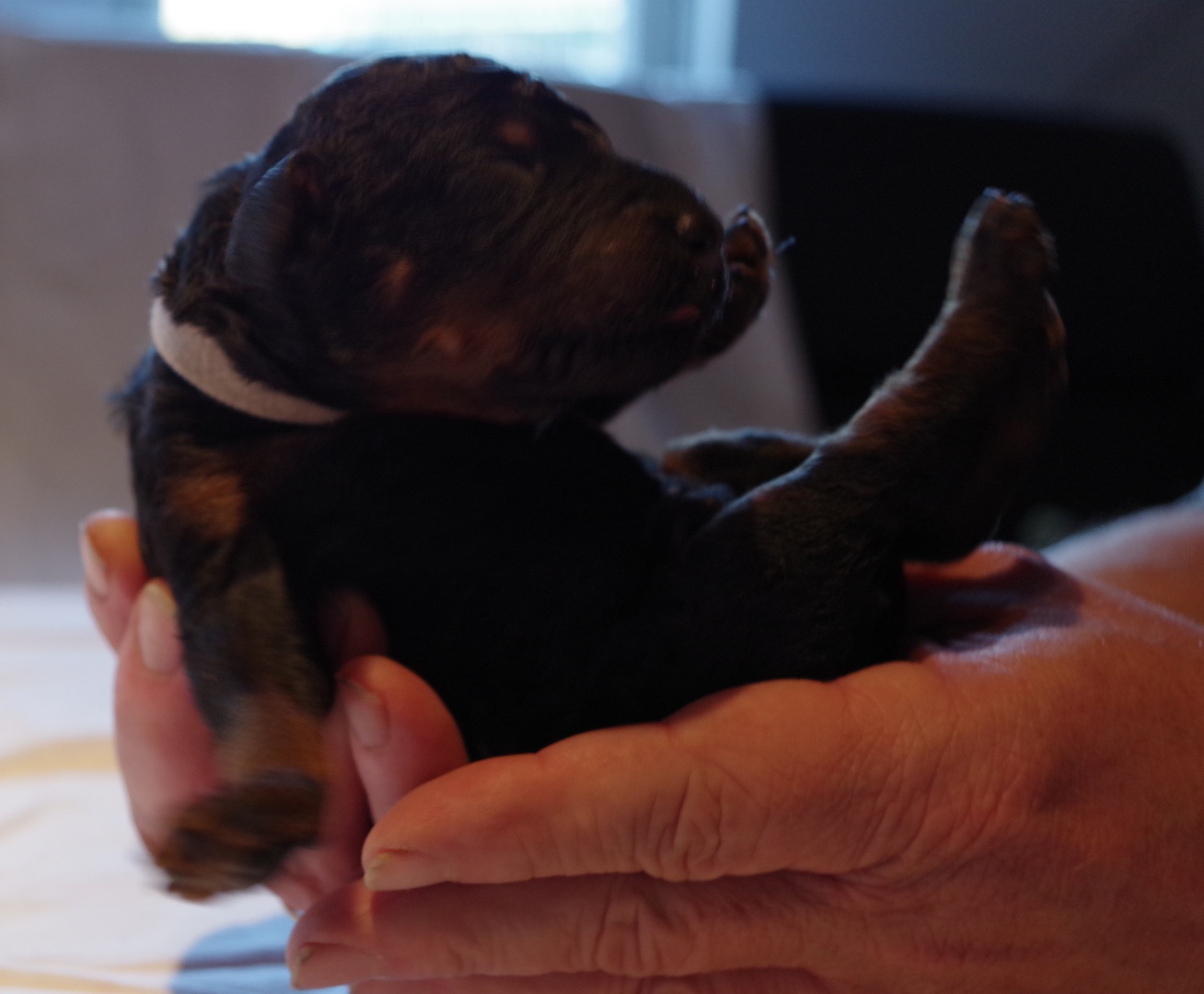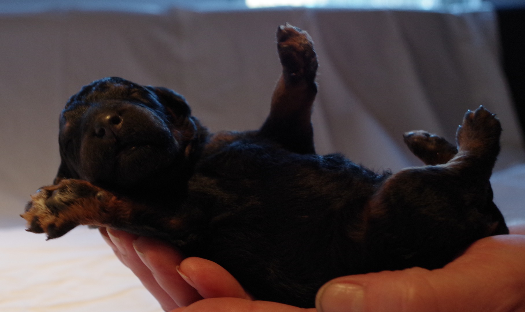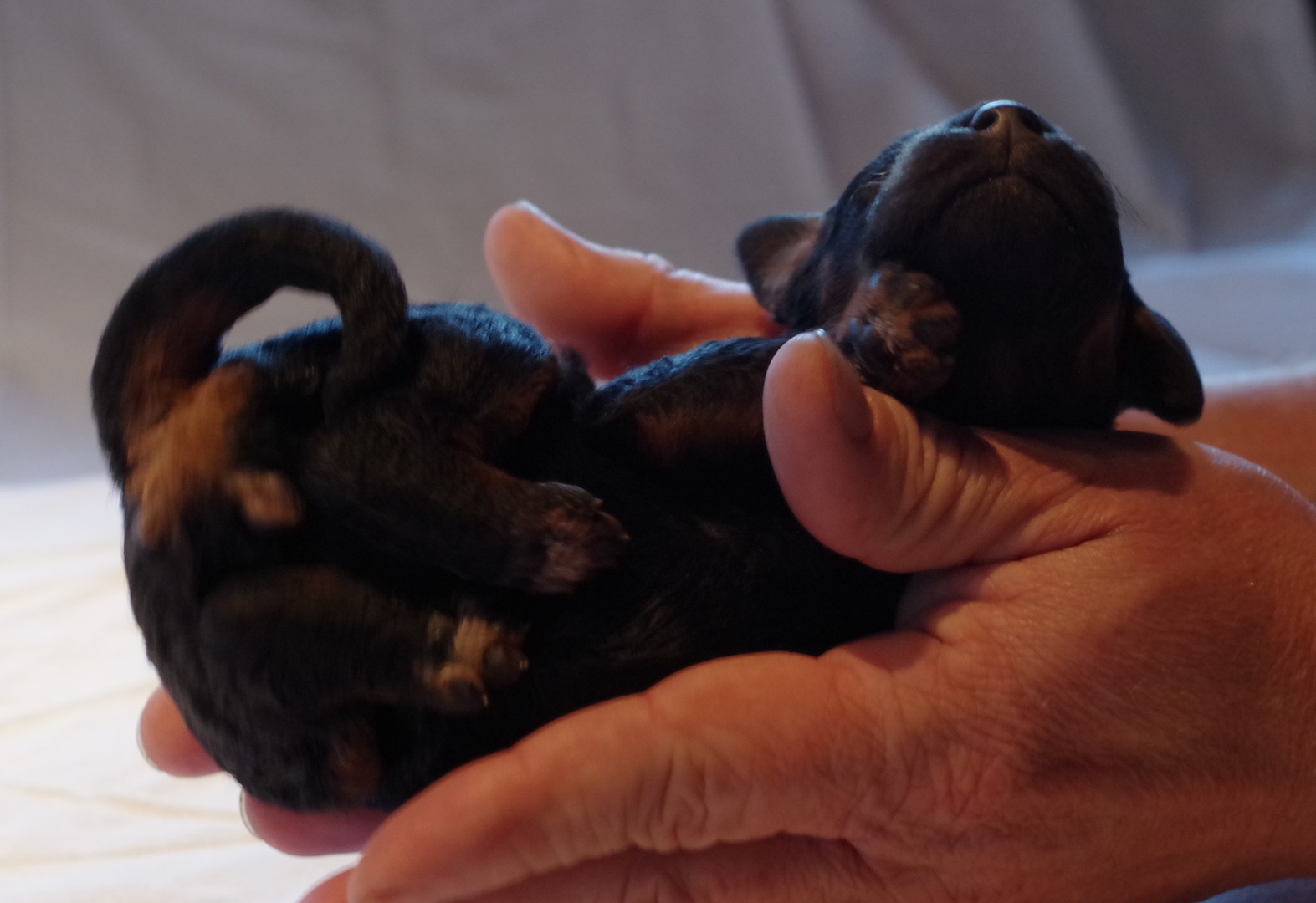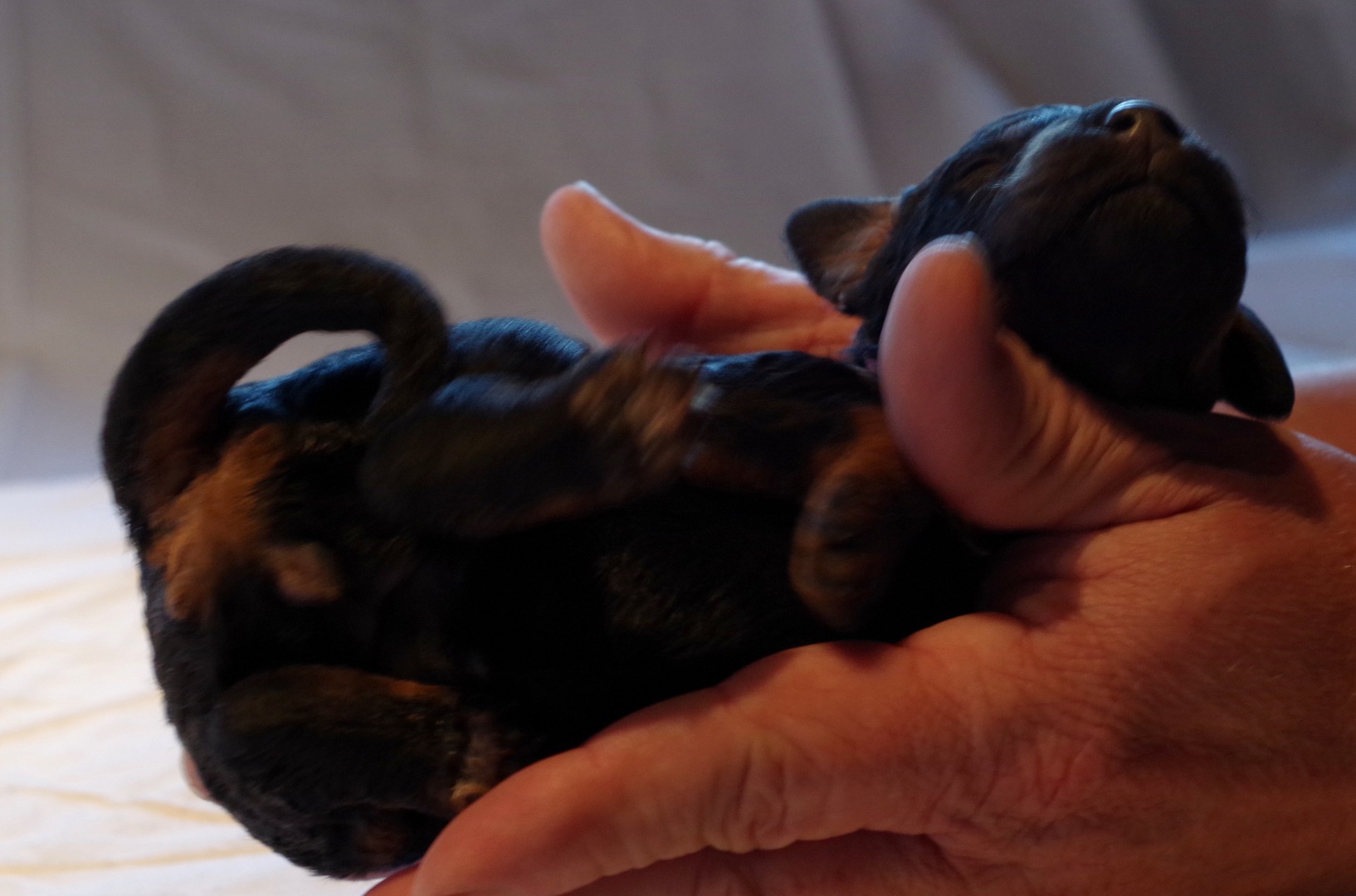 Am 31.10.16 wurden 5 Rüden und 3 Hündinnen geboren, in den Farben apricot (fawn), black & tan (schwarz-loh) und schwarz.