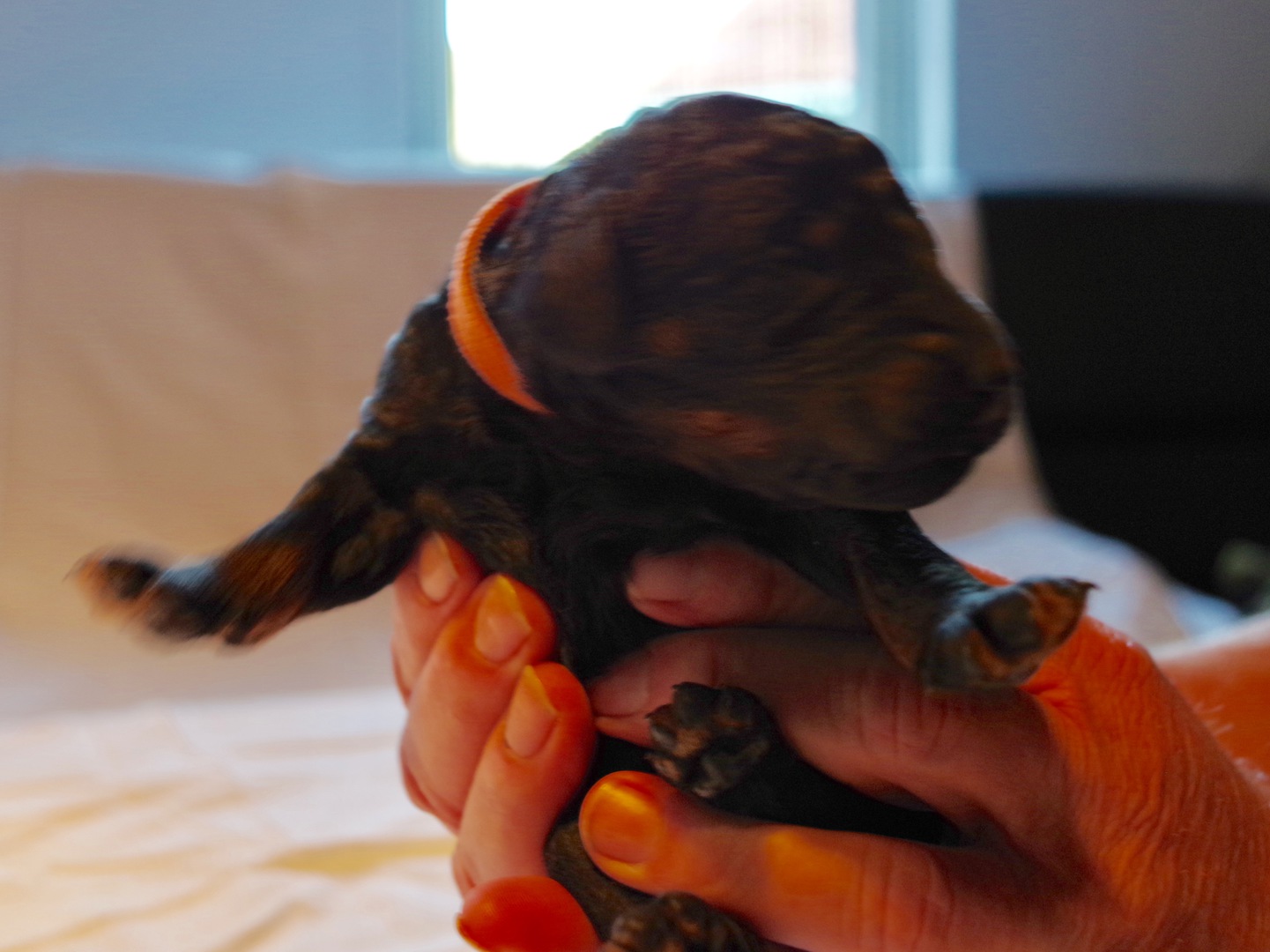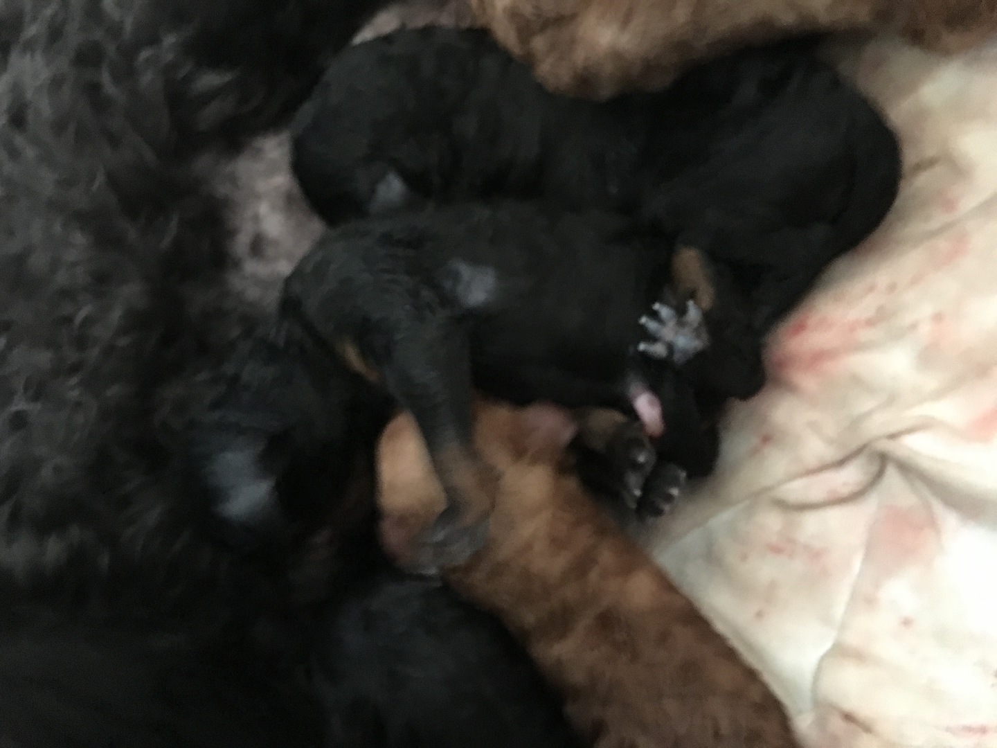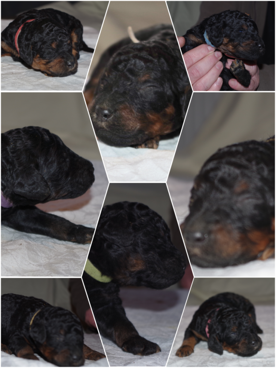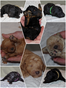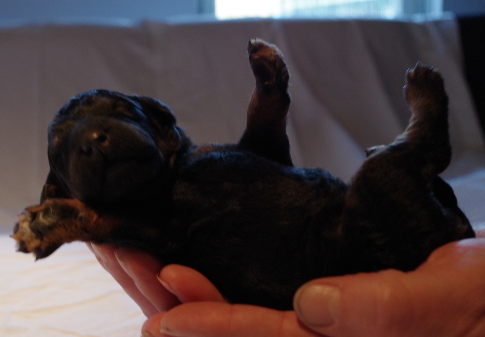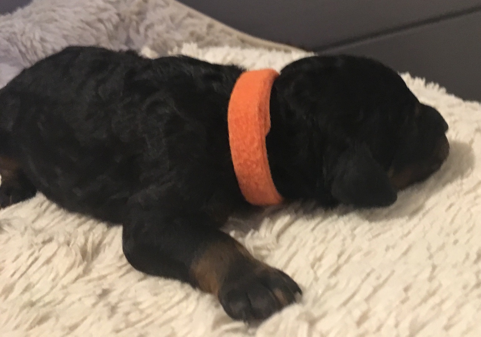 Am 31.10.16 wurden 5 Rüden und 3 Hündinnen geboren, in den Farben apricot (fawn), black & tan (schwarz-loh) und schwarz.