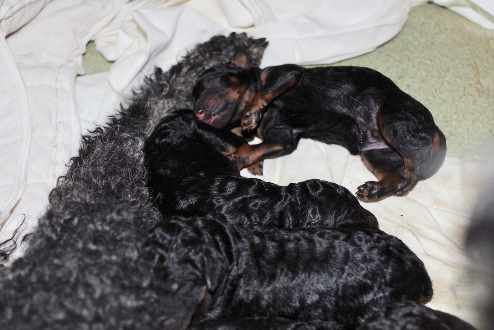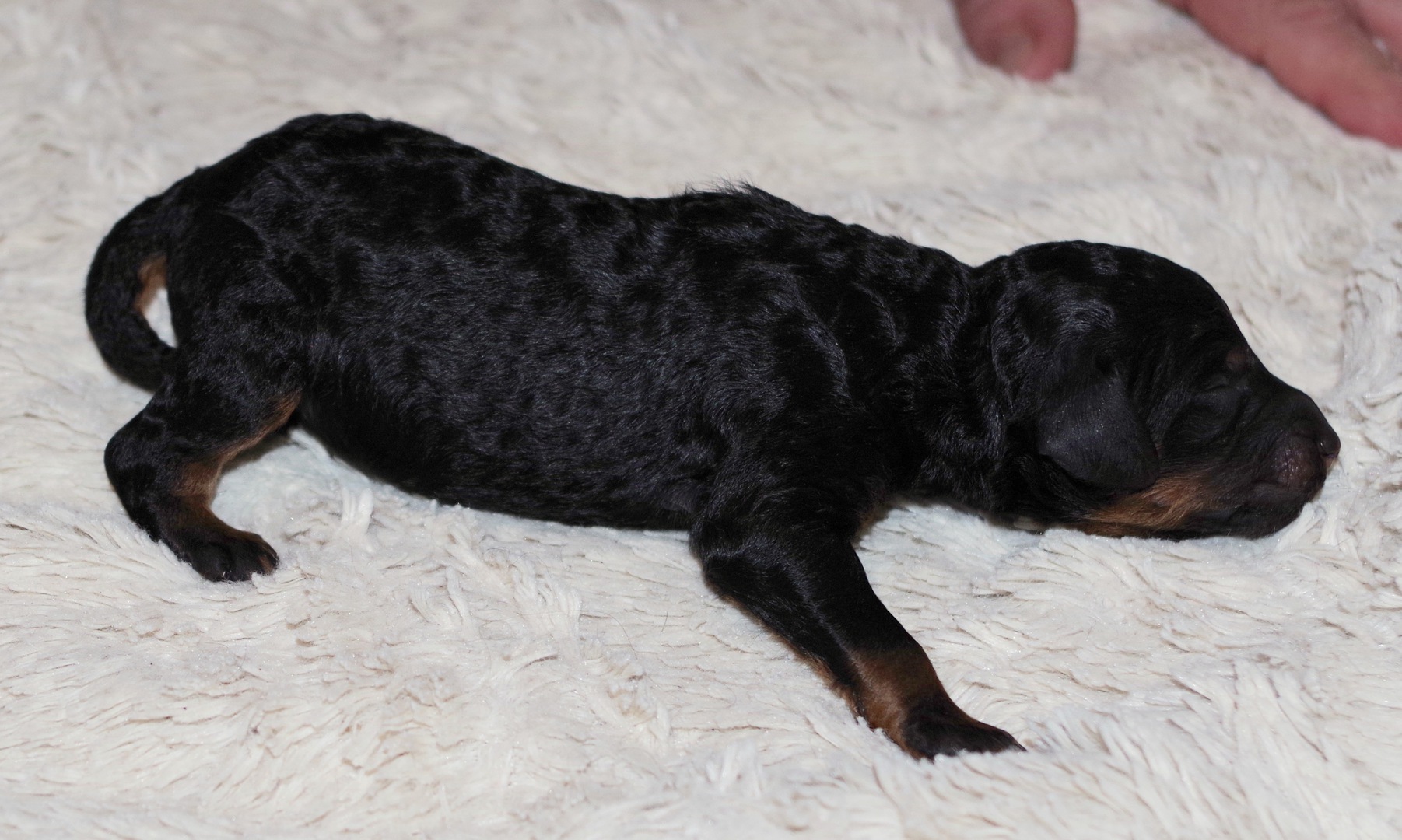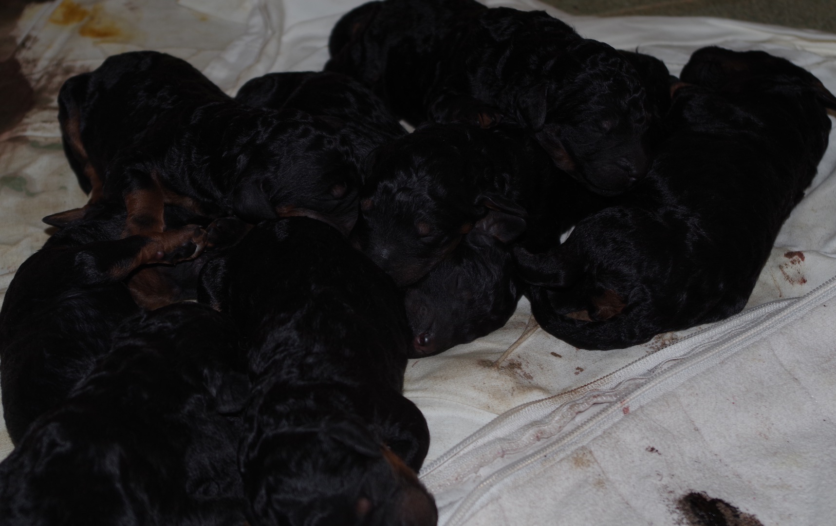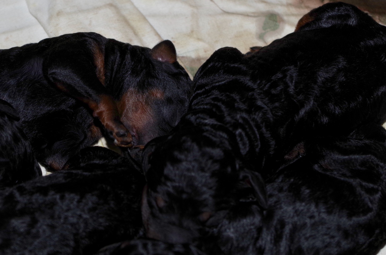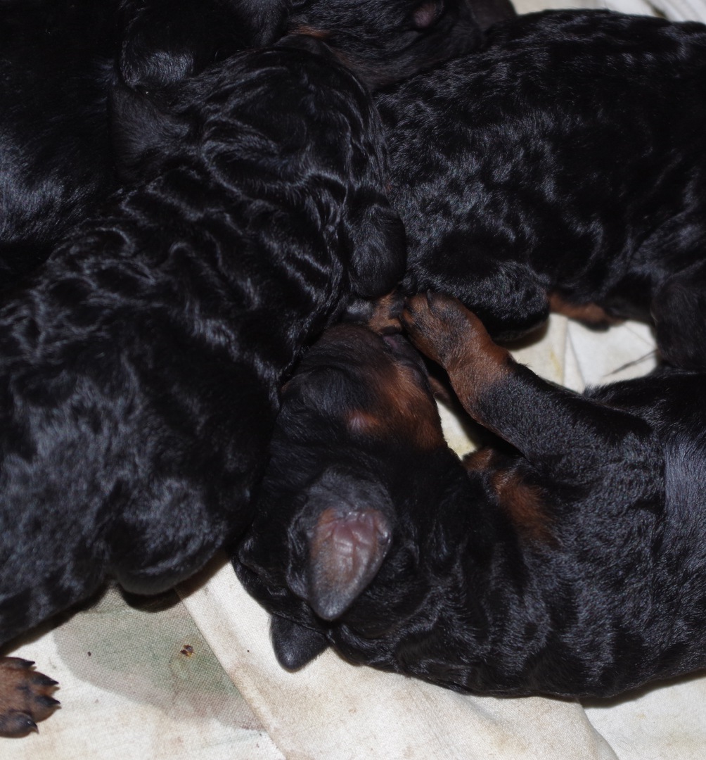 Am 31.10.16 wurden 5 Rüden und 3 Hündinnen geboren, in den Farben apricot (fawn), black & tan (schwarz-loh) und schwarz.