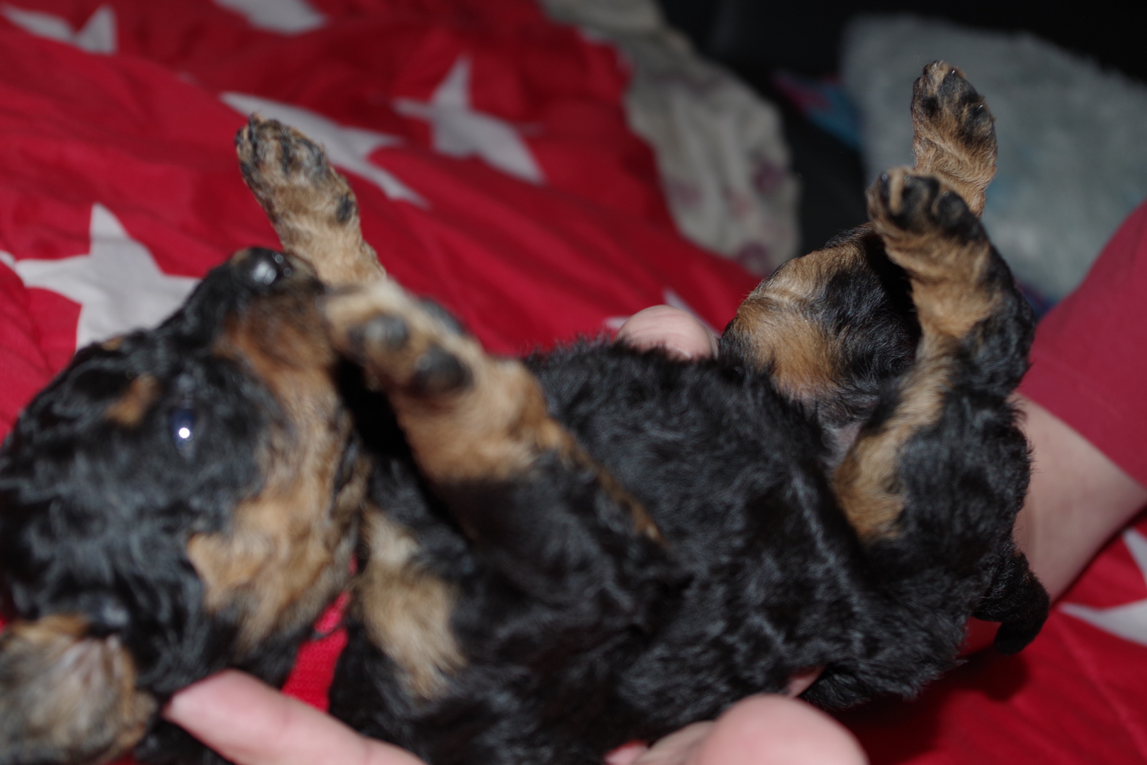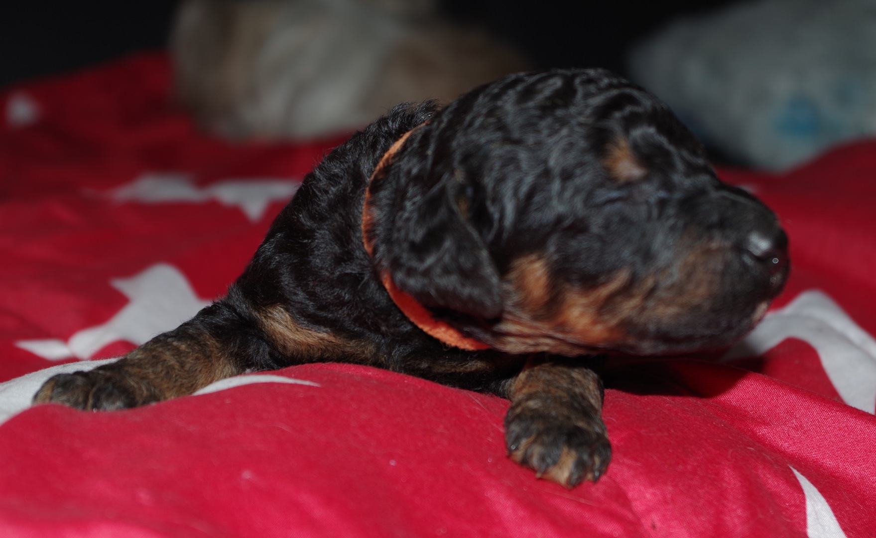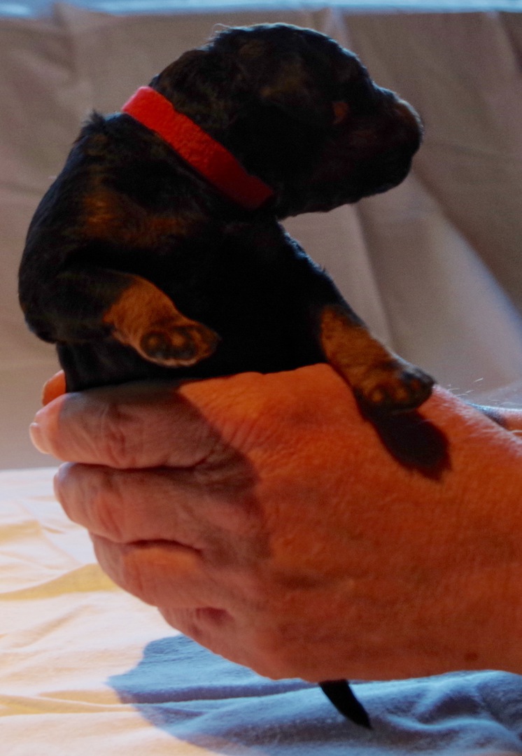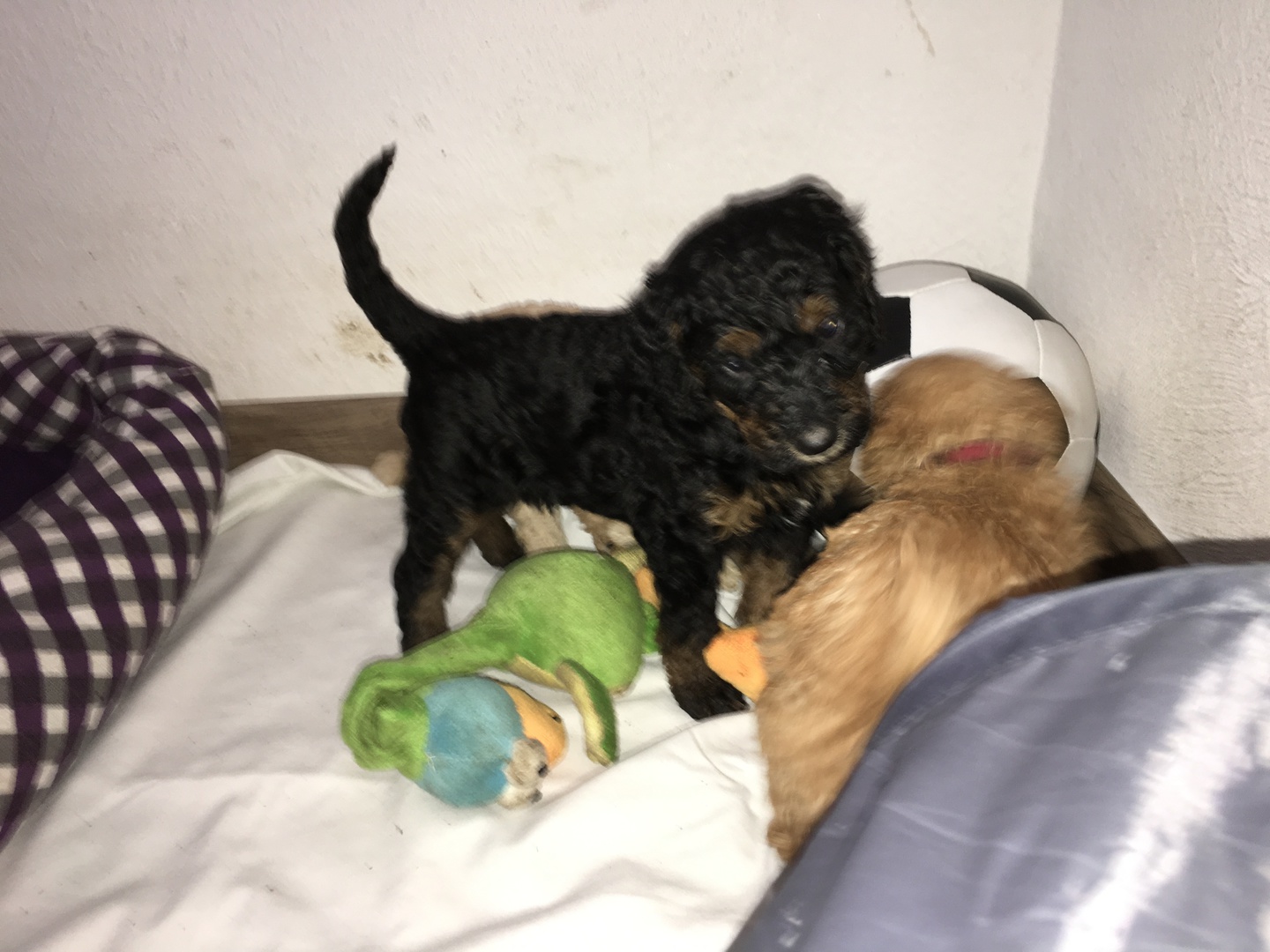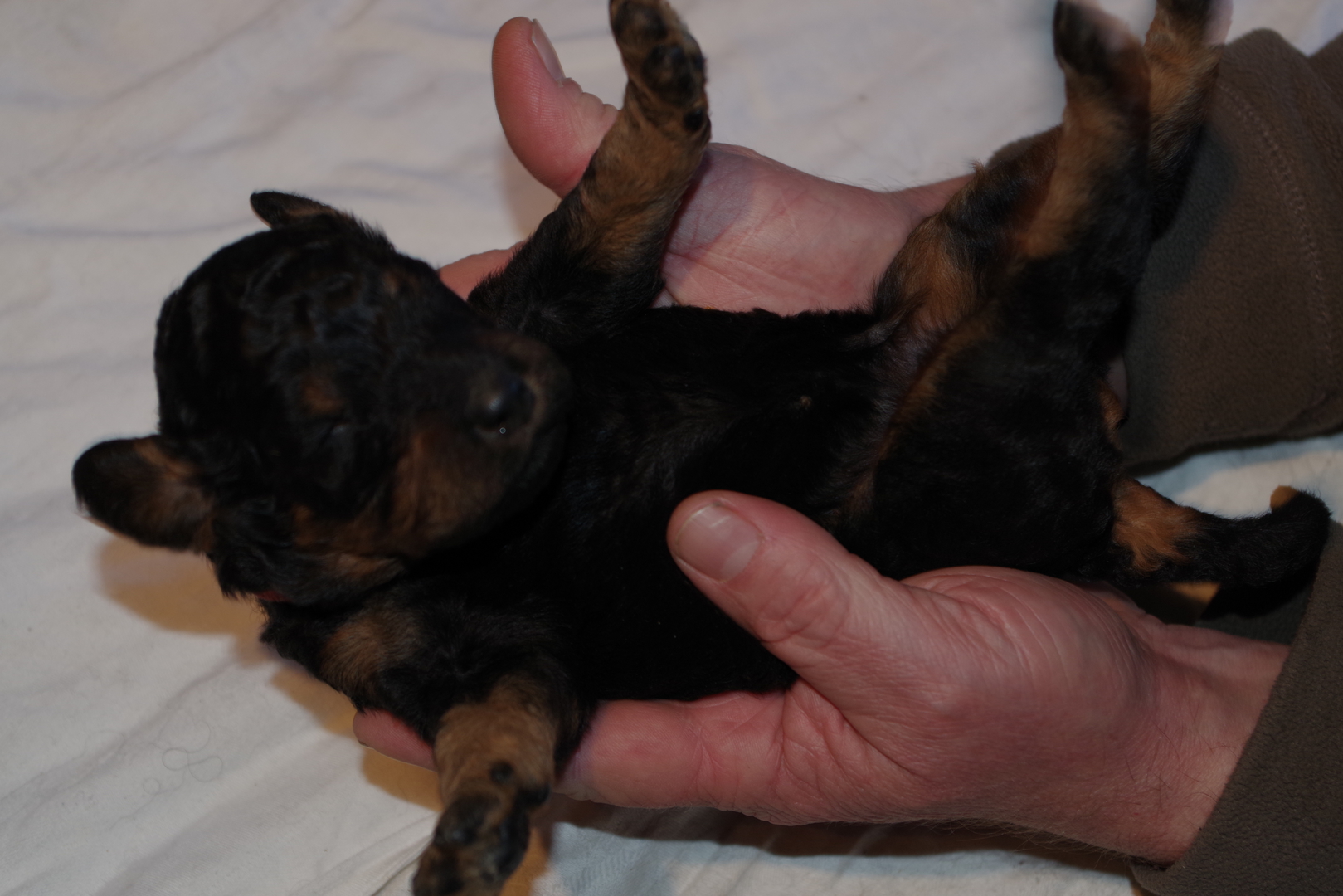 Am 31.10.16 wurden 5 Rüden und 3 Hündinnen geboren, in den Farben apricot (fawn), black & tan (schwarz-loh) und schwarz.