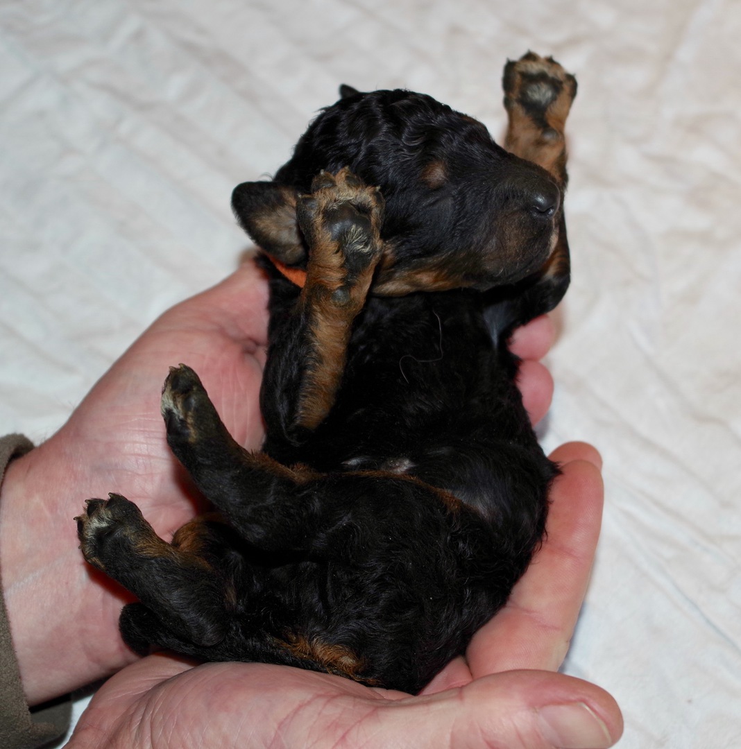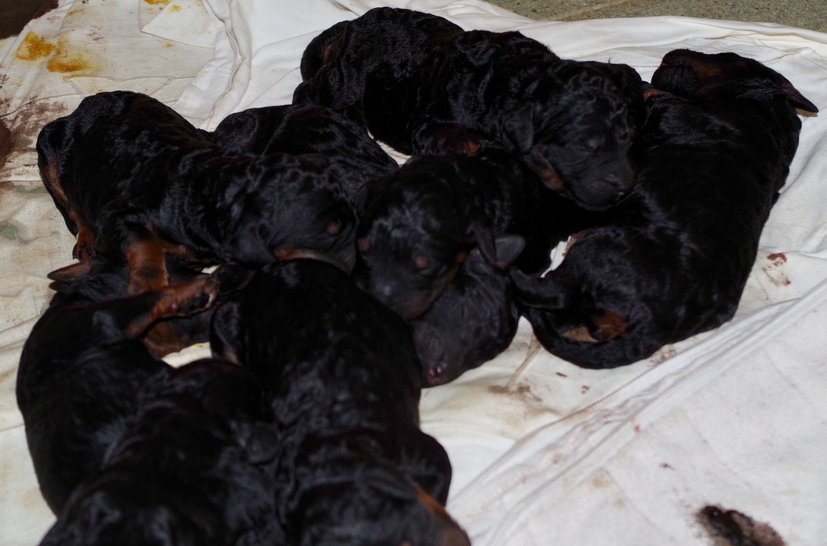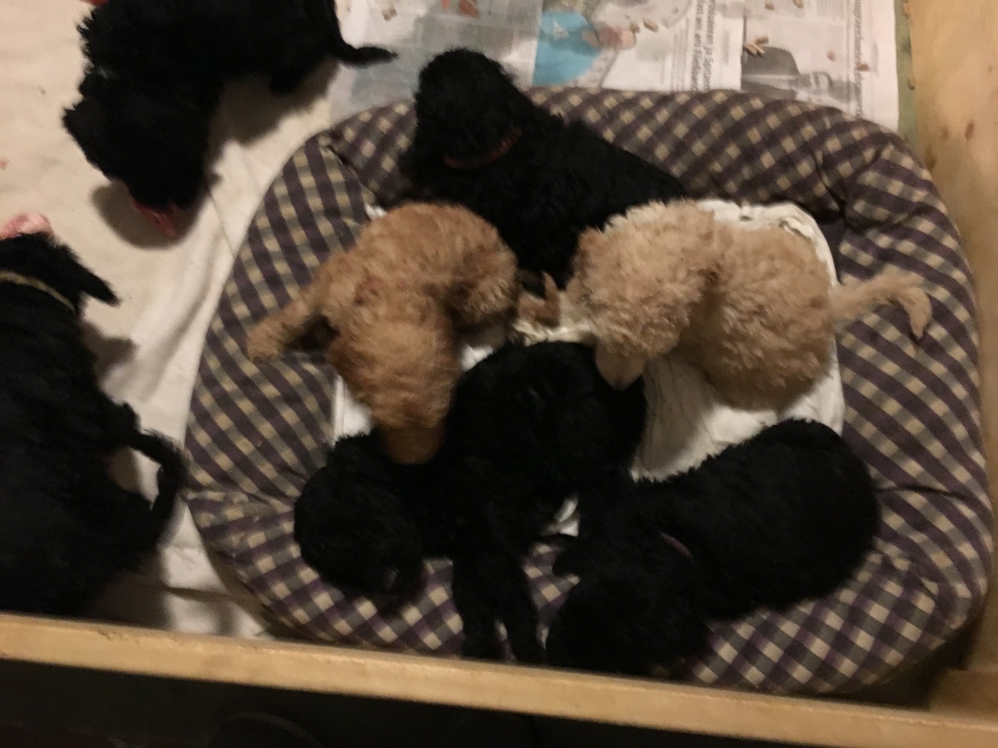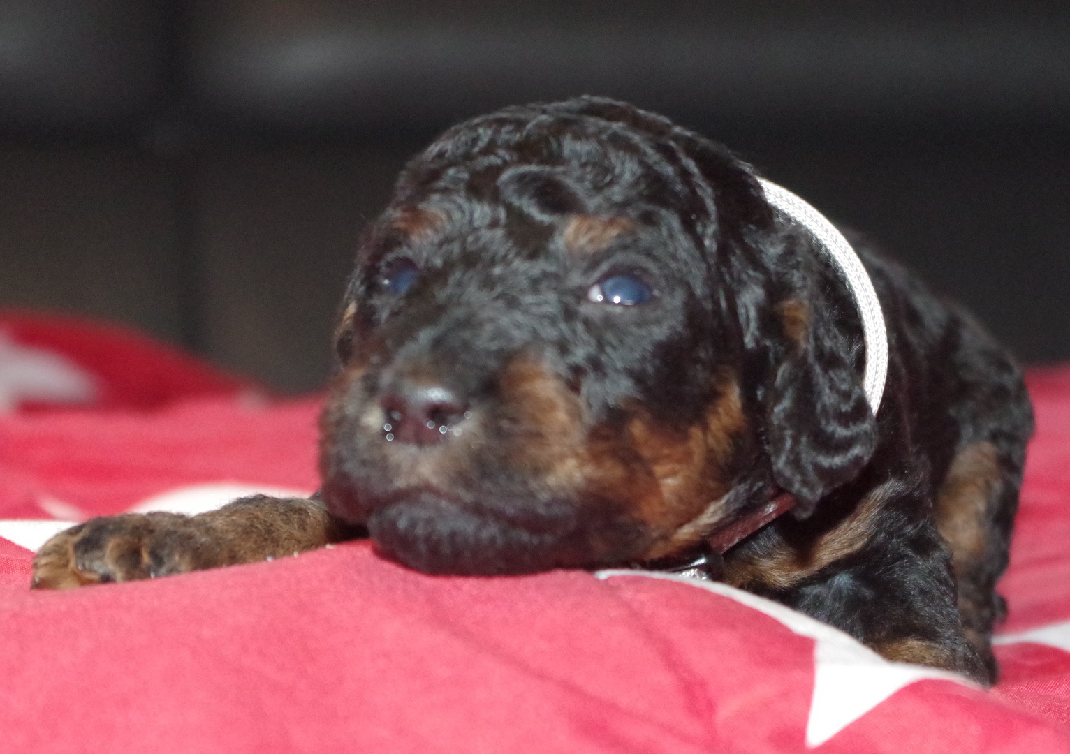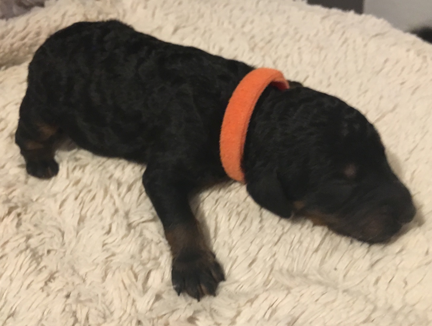 Am 31.10.16 wurden 5 Rüden und 3 Hündinnen geboren, in den Farben apricot (fawn), black & tan (schwarz-loh) und schwarz.