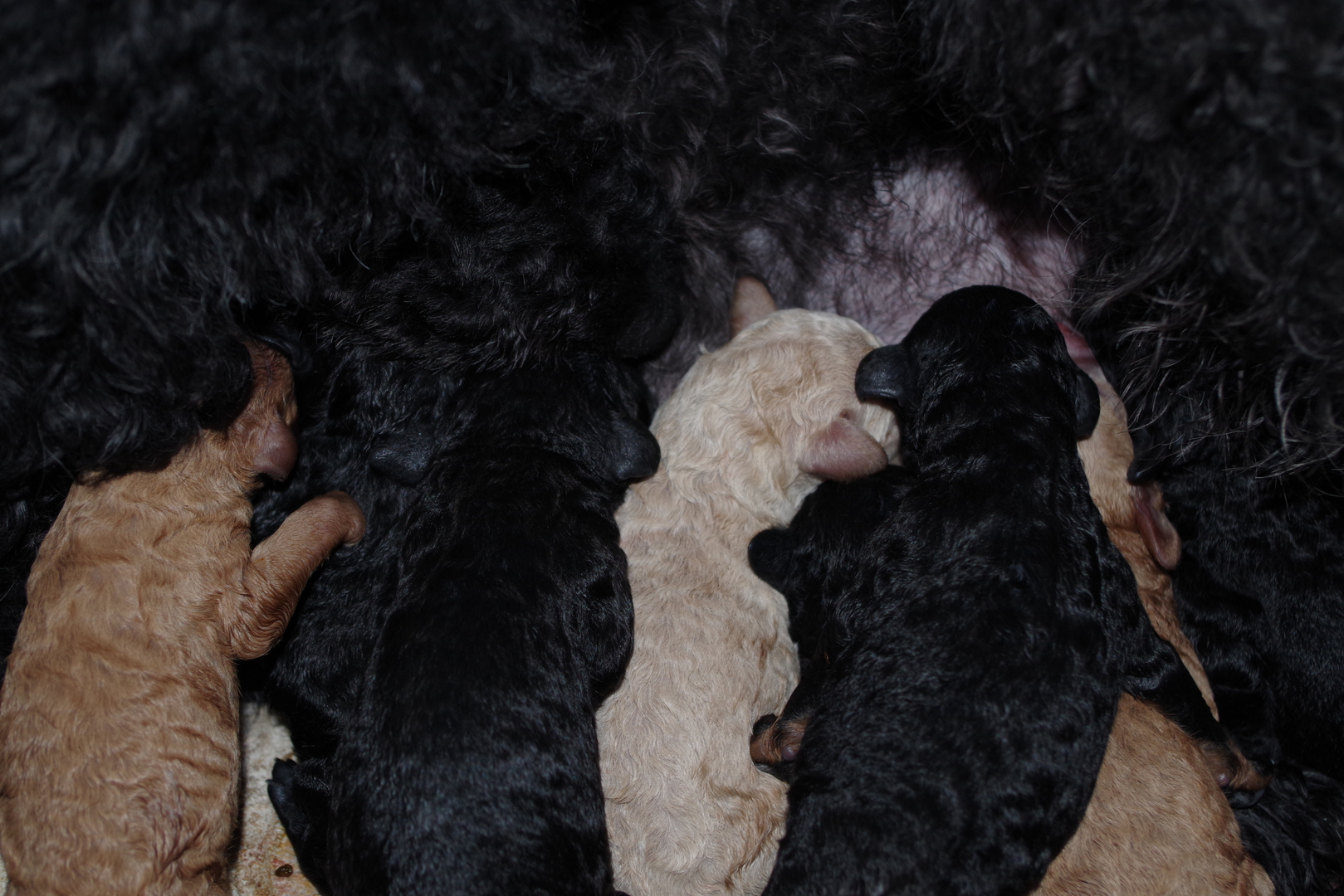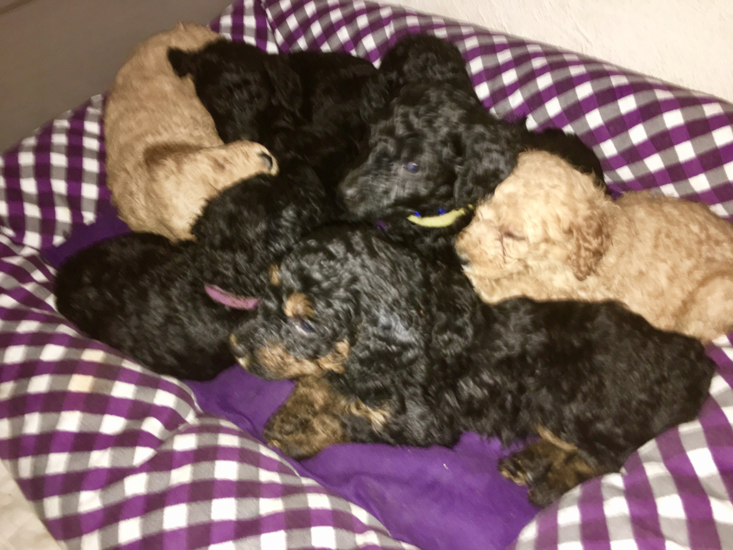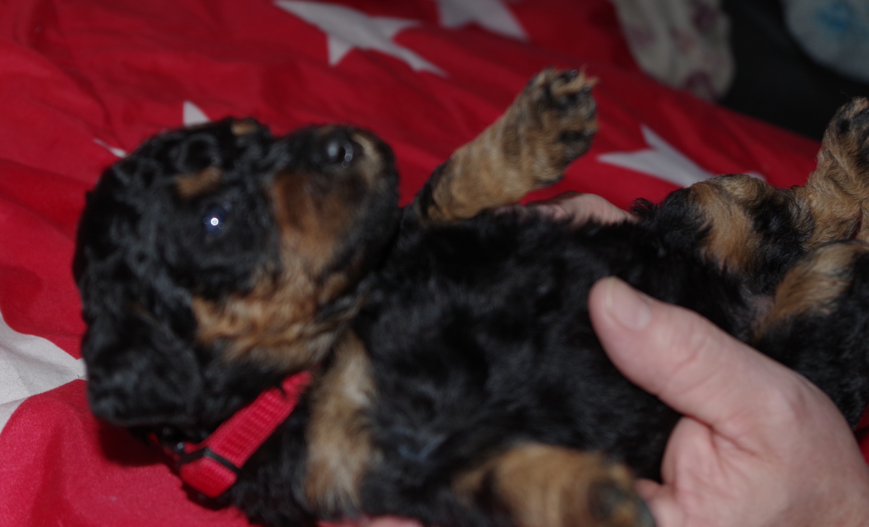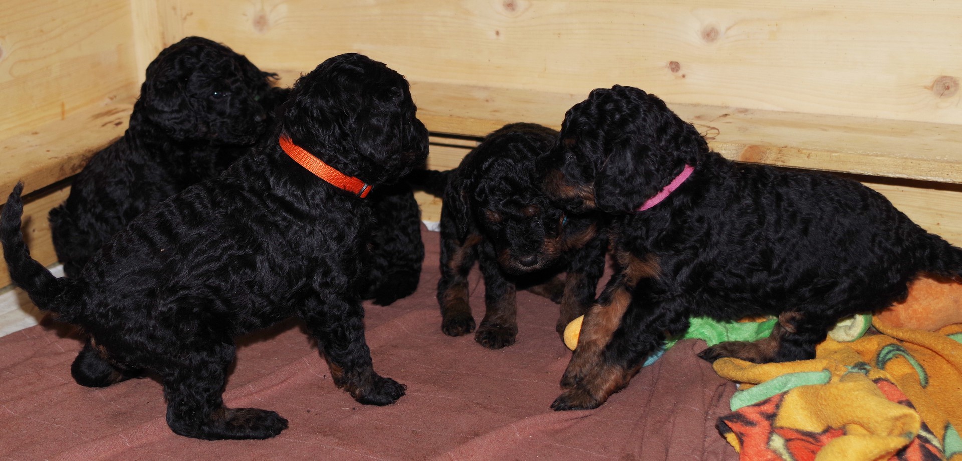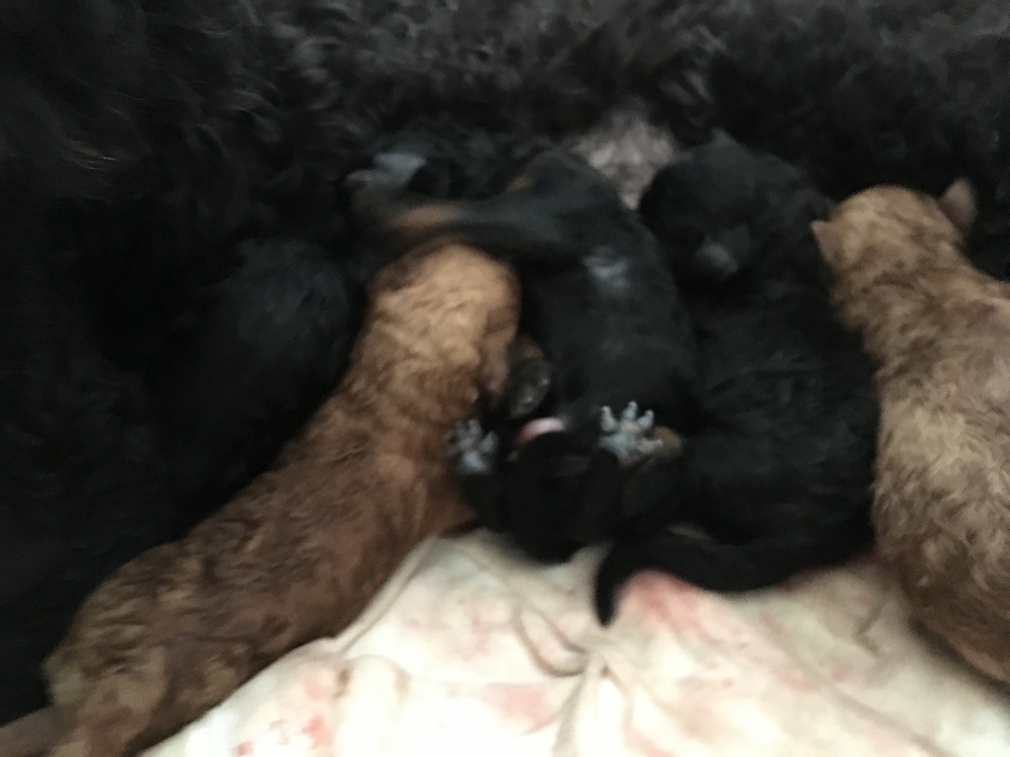 Am 31.10.16 wurden 5 Rüden und 3 Hündinnen geboren, in den Farben apricot (fawn), black & tan (schwarz-loh) und schwarz.