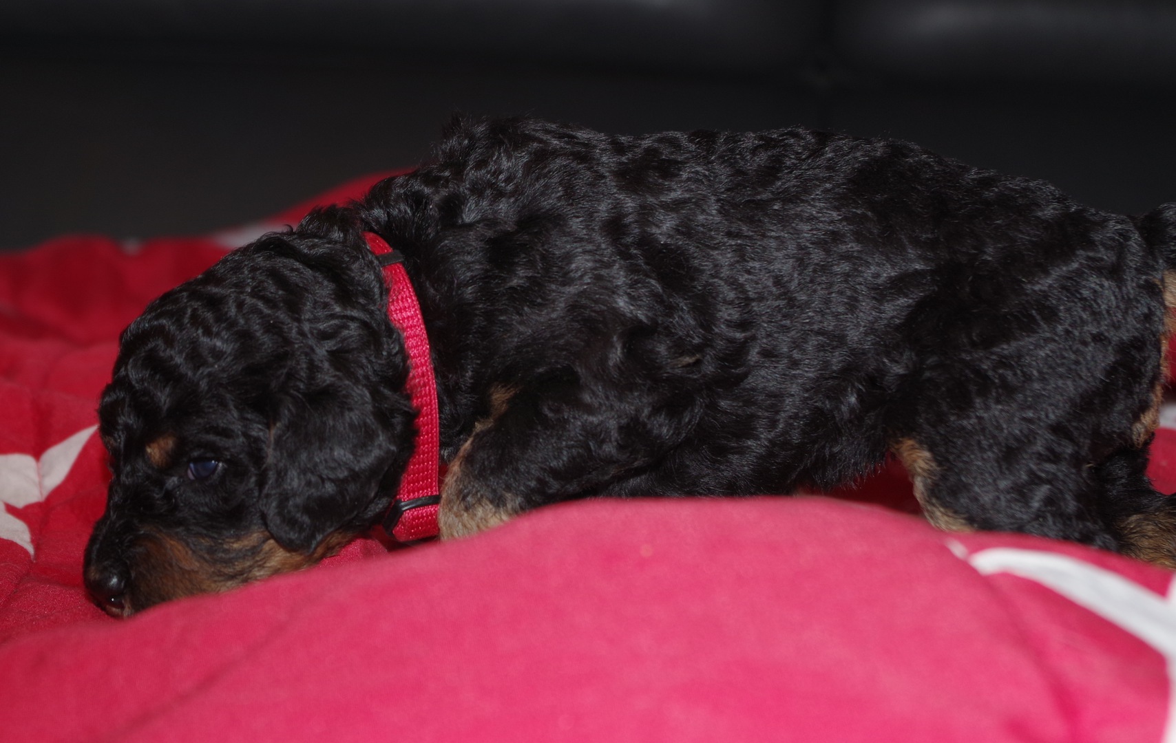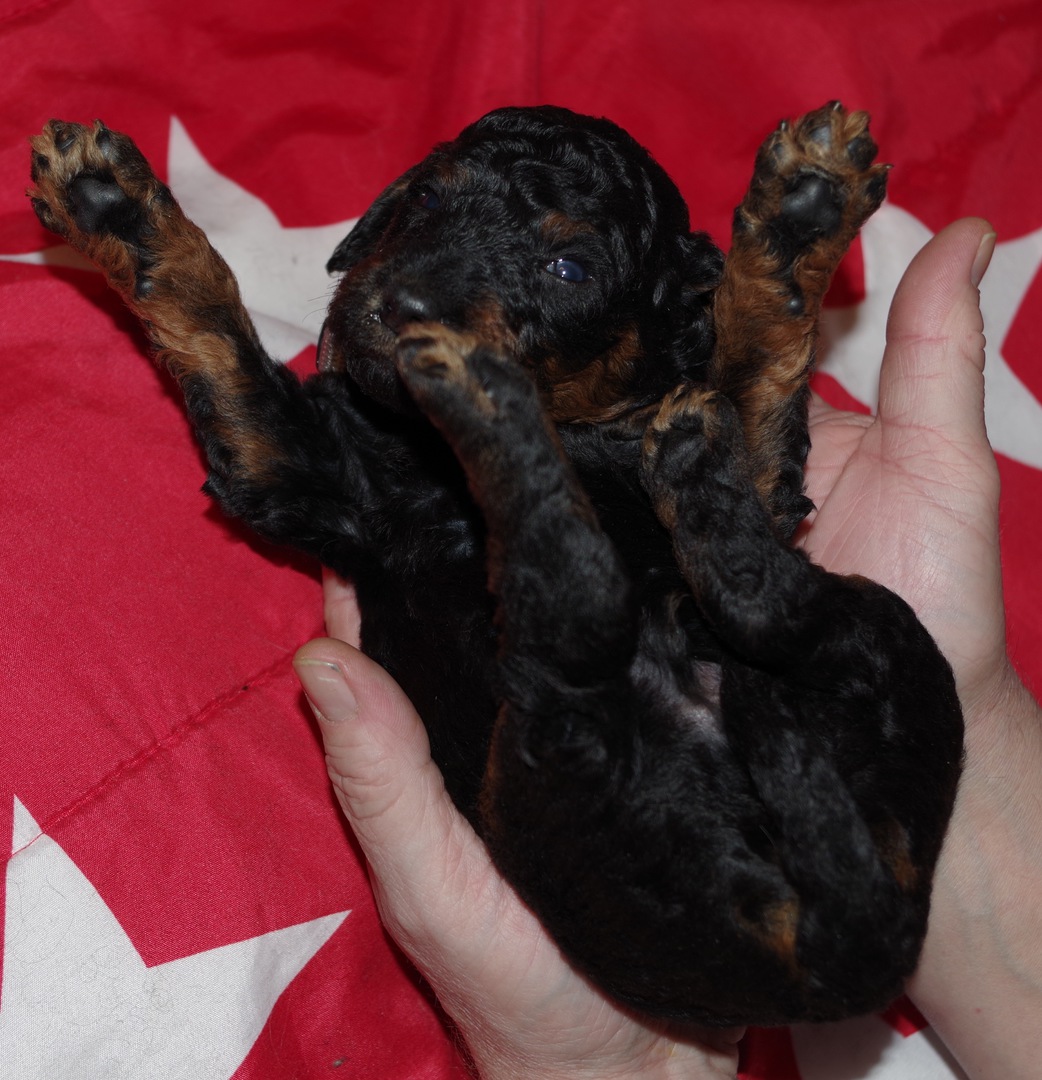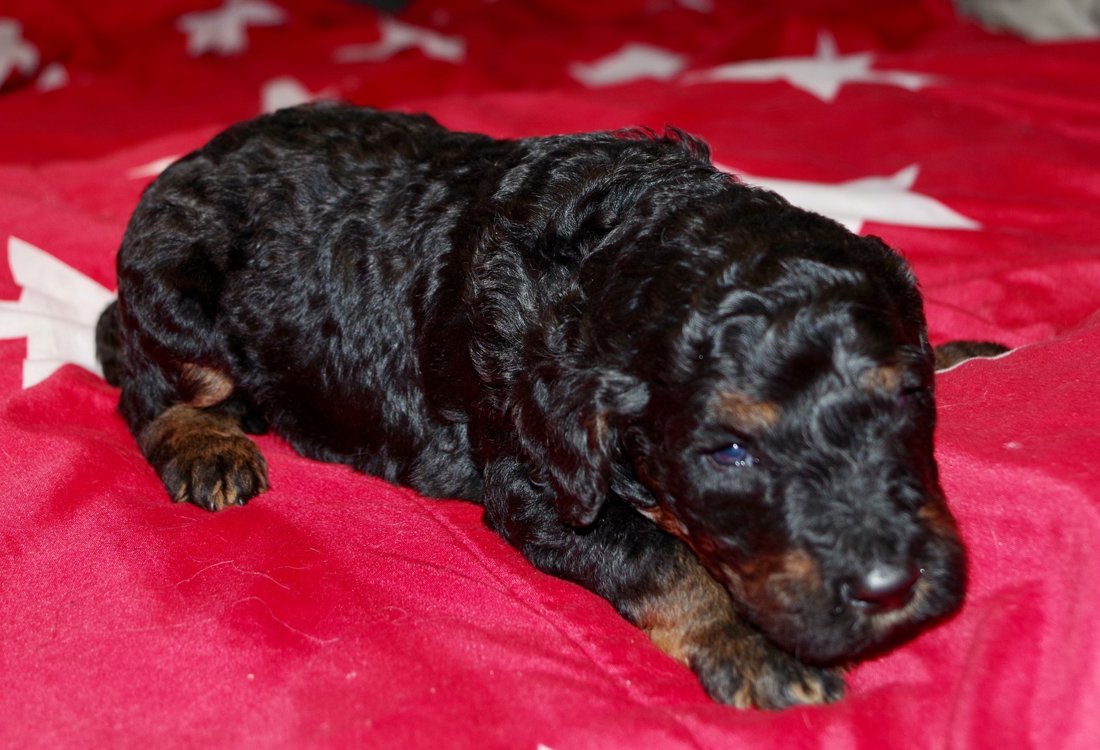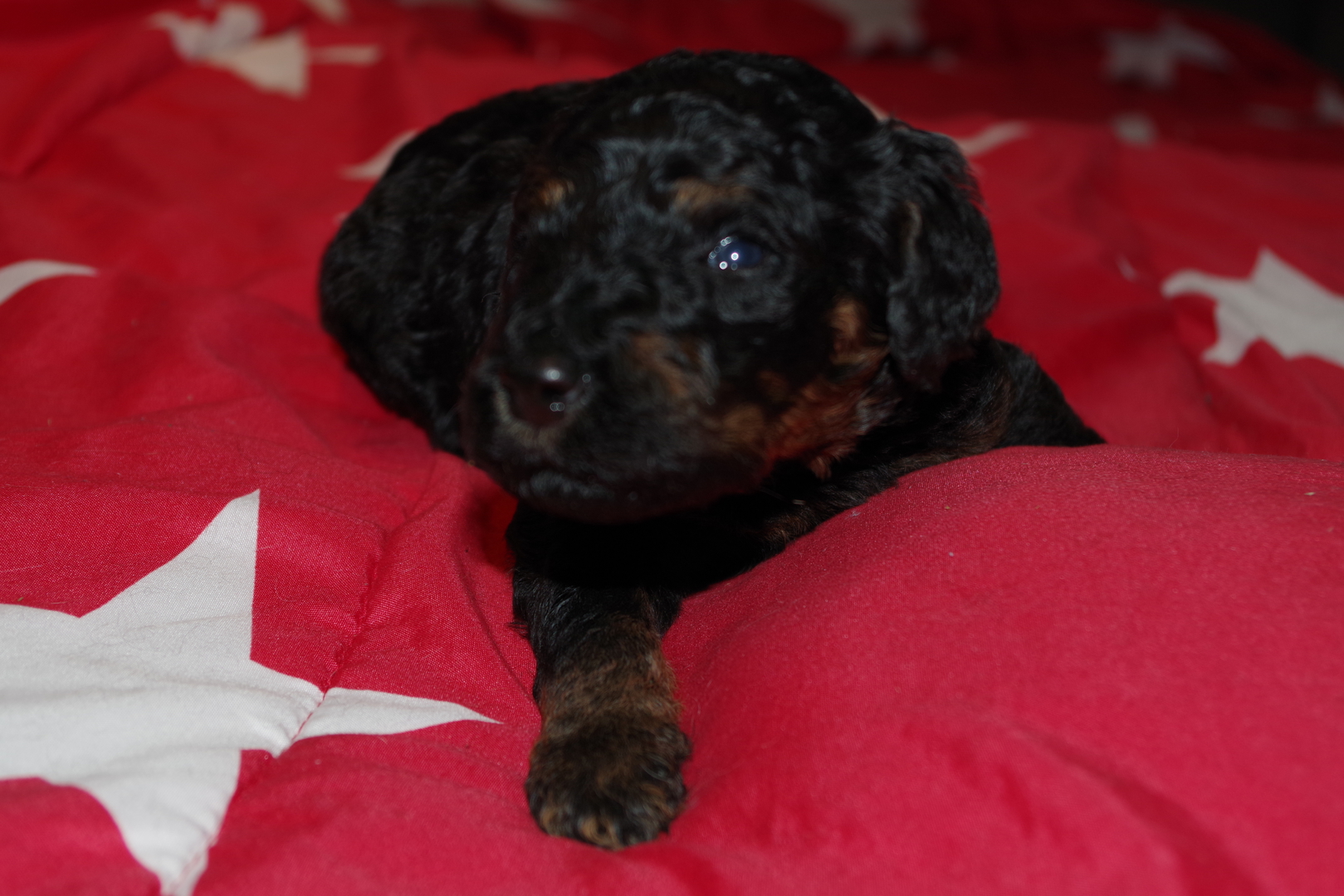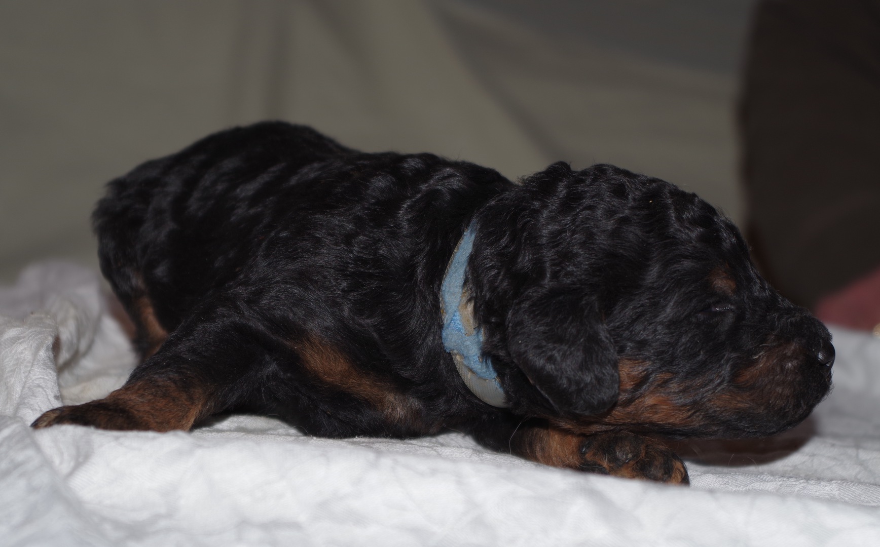 Am 31.10.16 wurden 5 Rüden und 3 Hündinnen geboren, in den Farben apricot (fawn), black & tan (schwarz-loh) und schwarz.