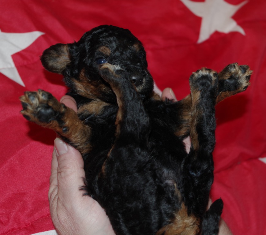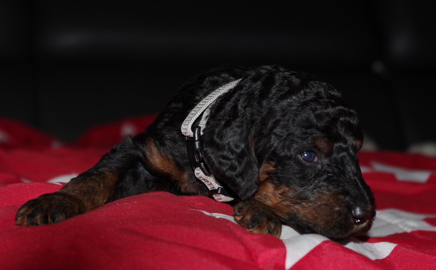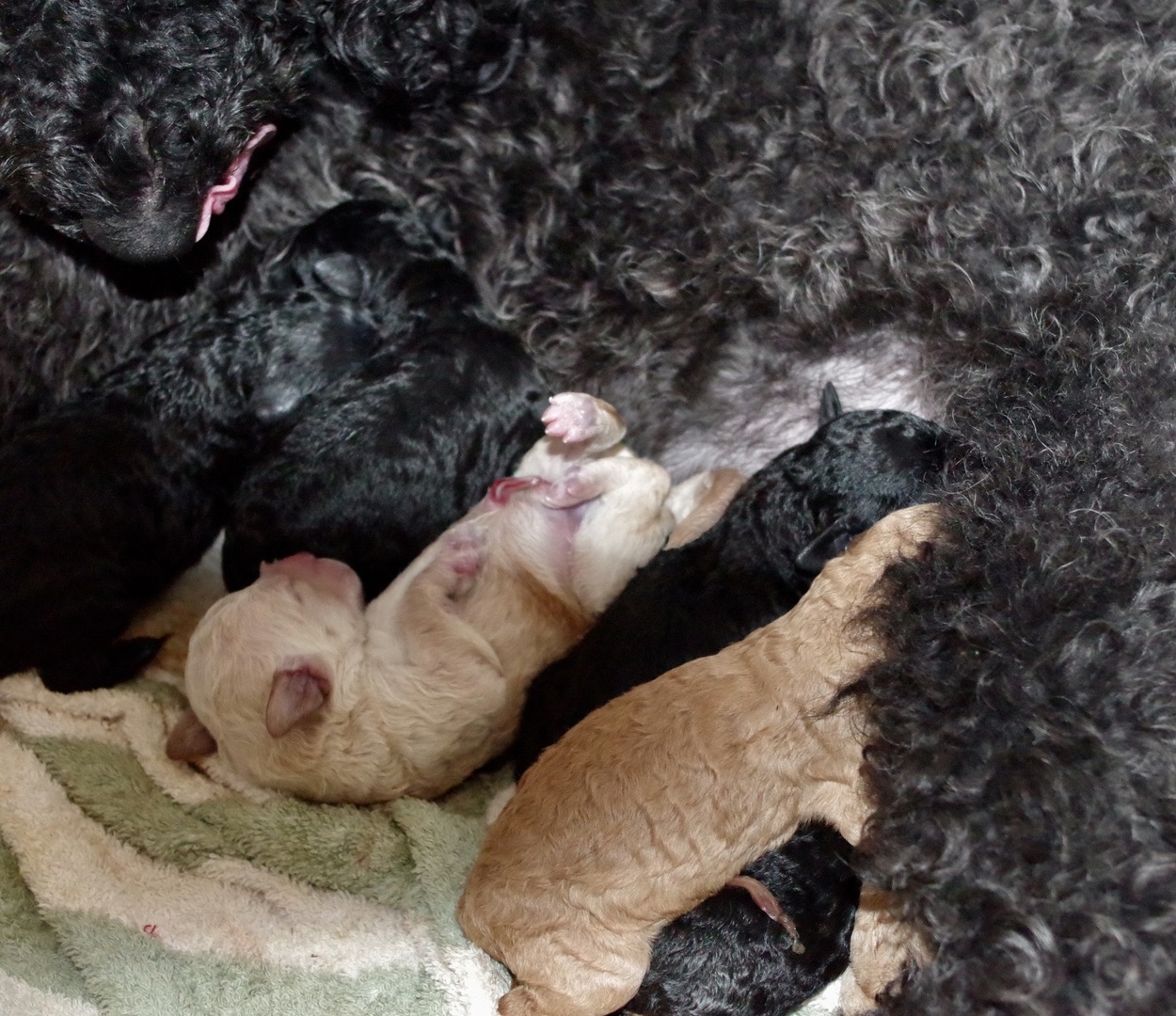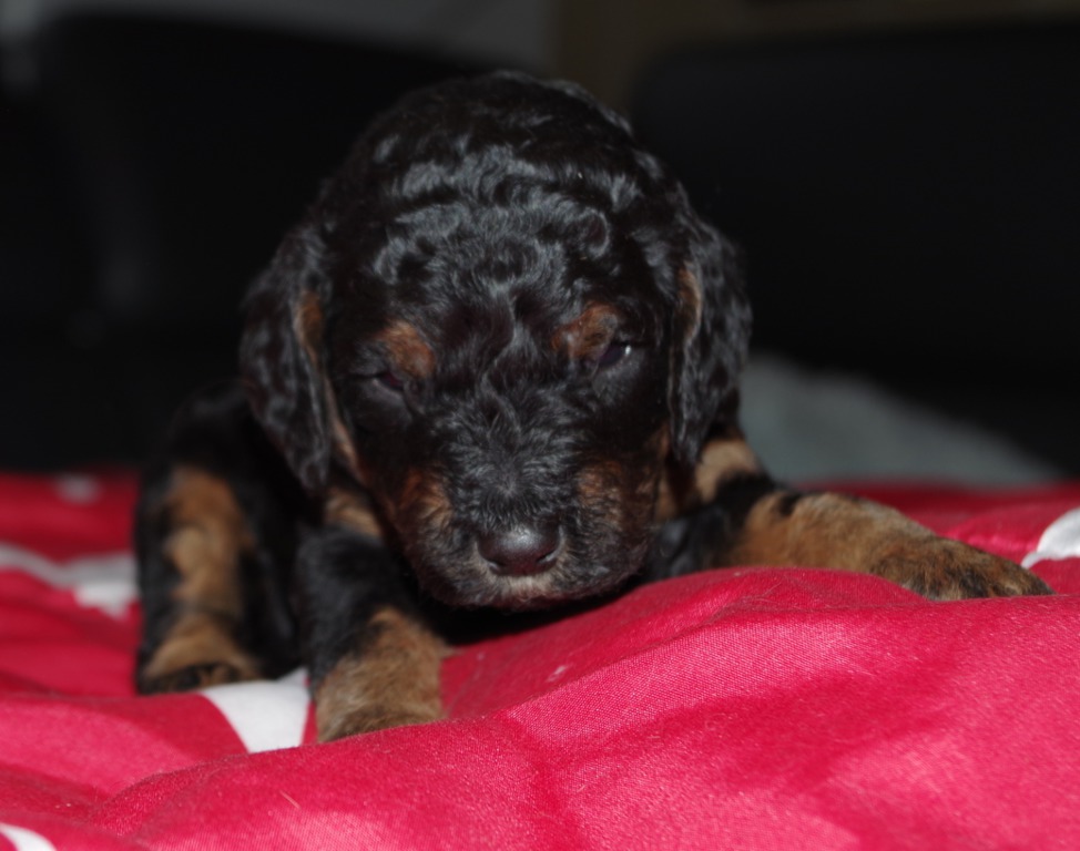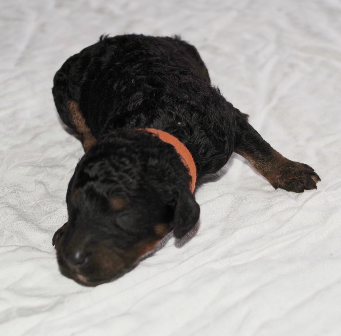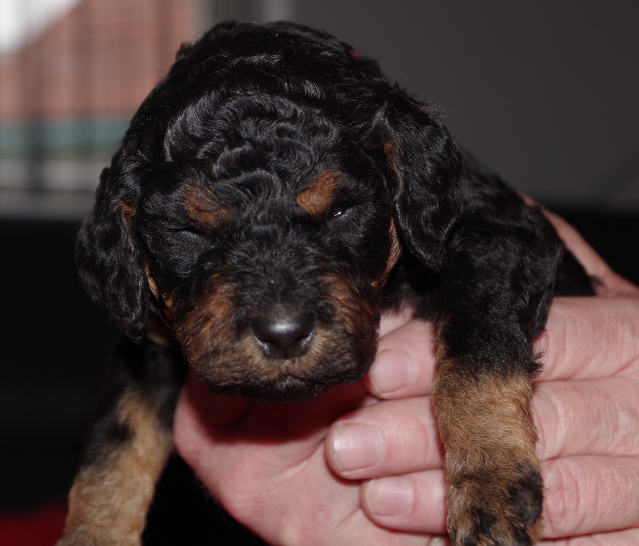 Am 31.10.16 wurden 5 Rüden und 3 Hündinnen geboren, in den Farben apricot (fawn), black & tan (schwarz-loh) und schwarz.