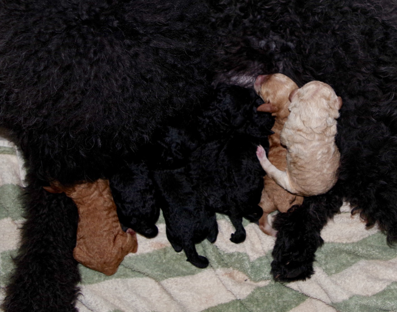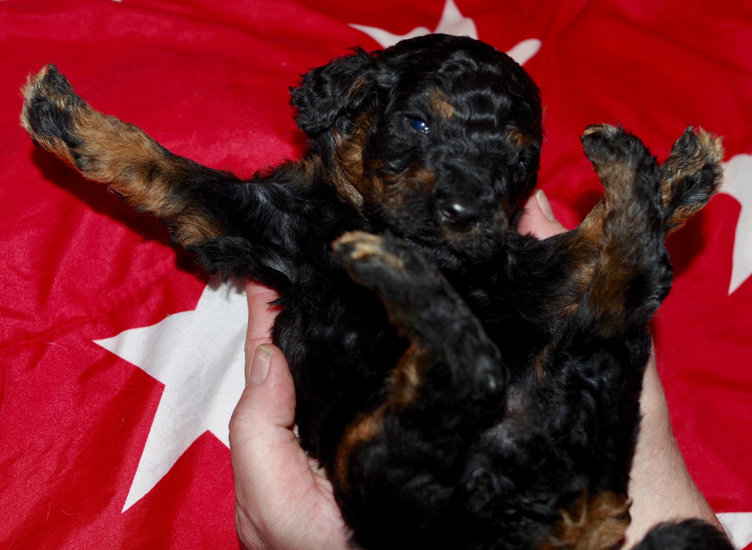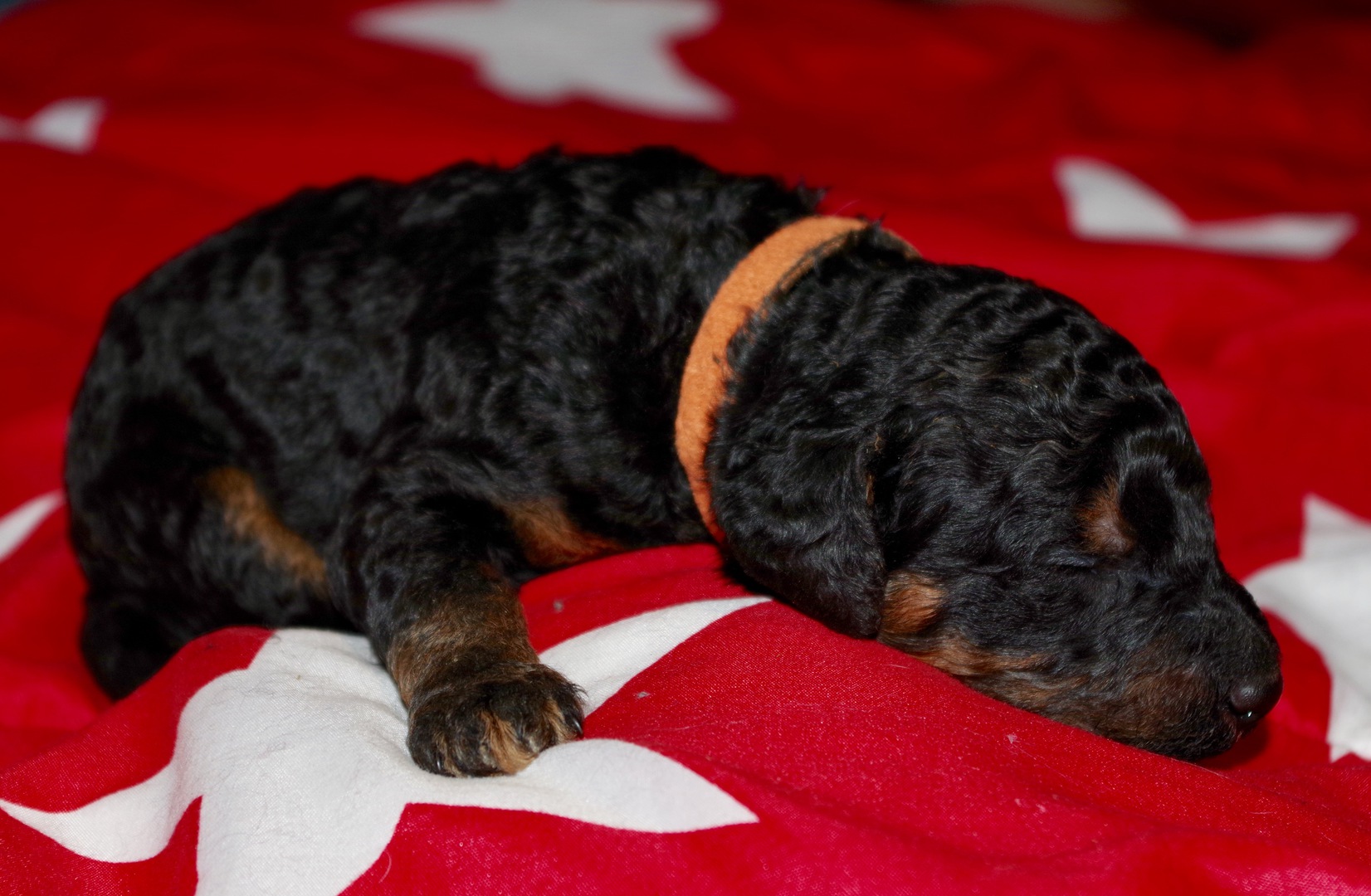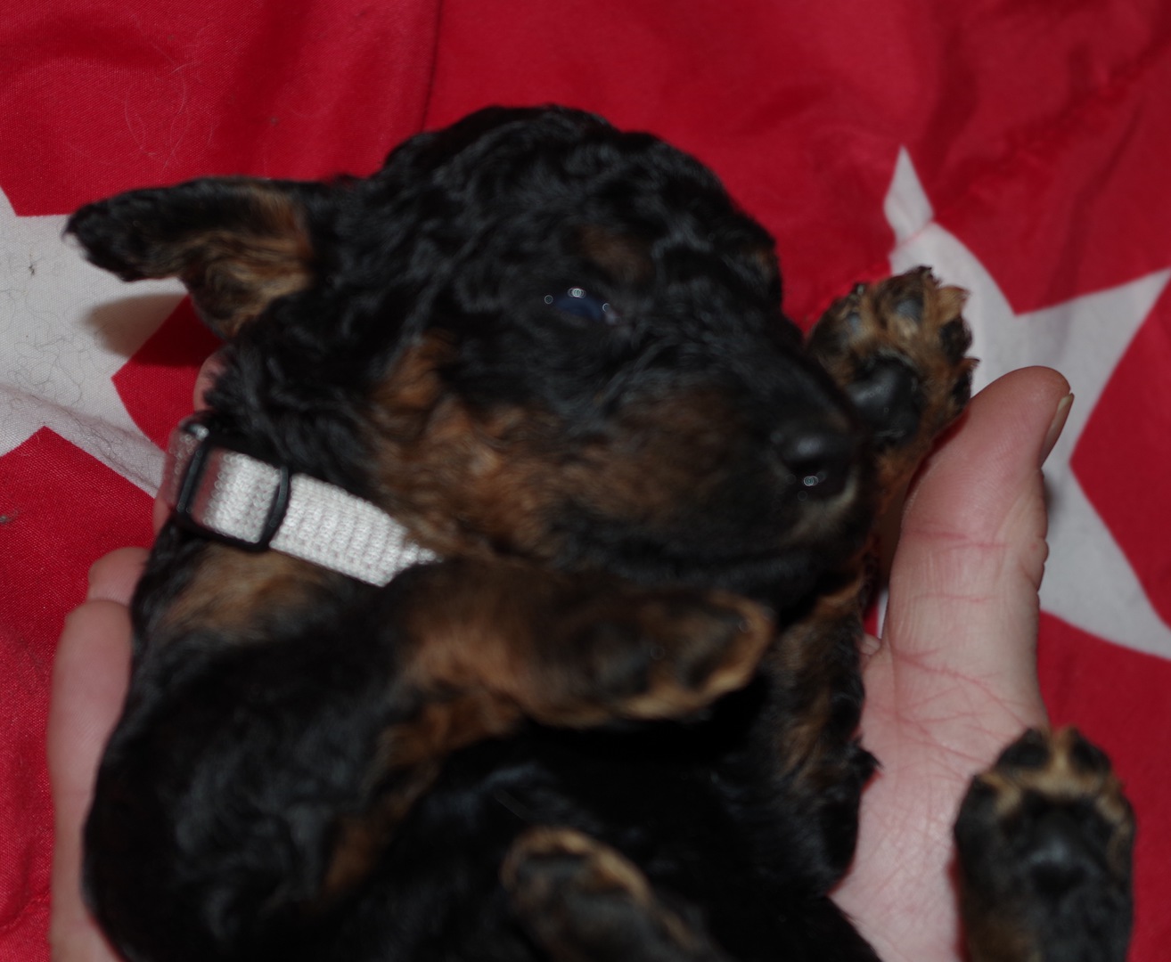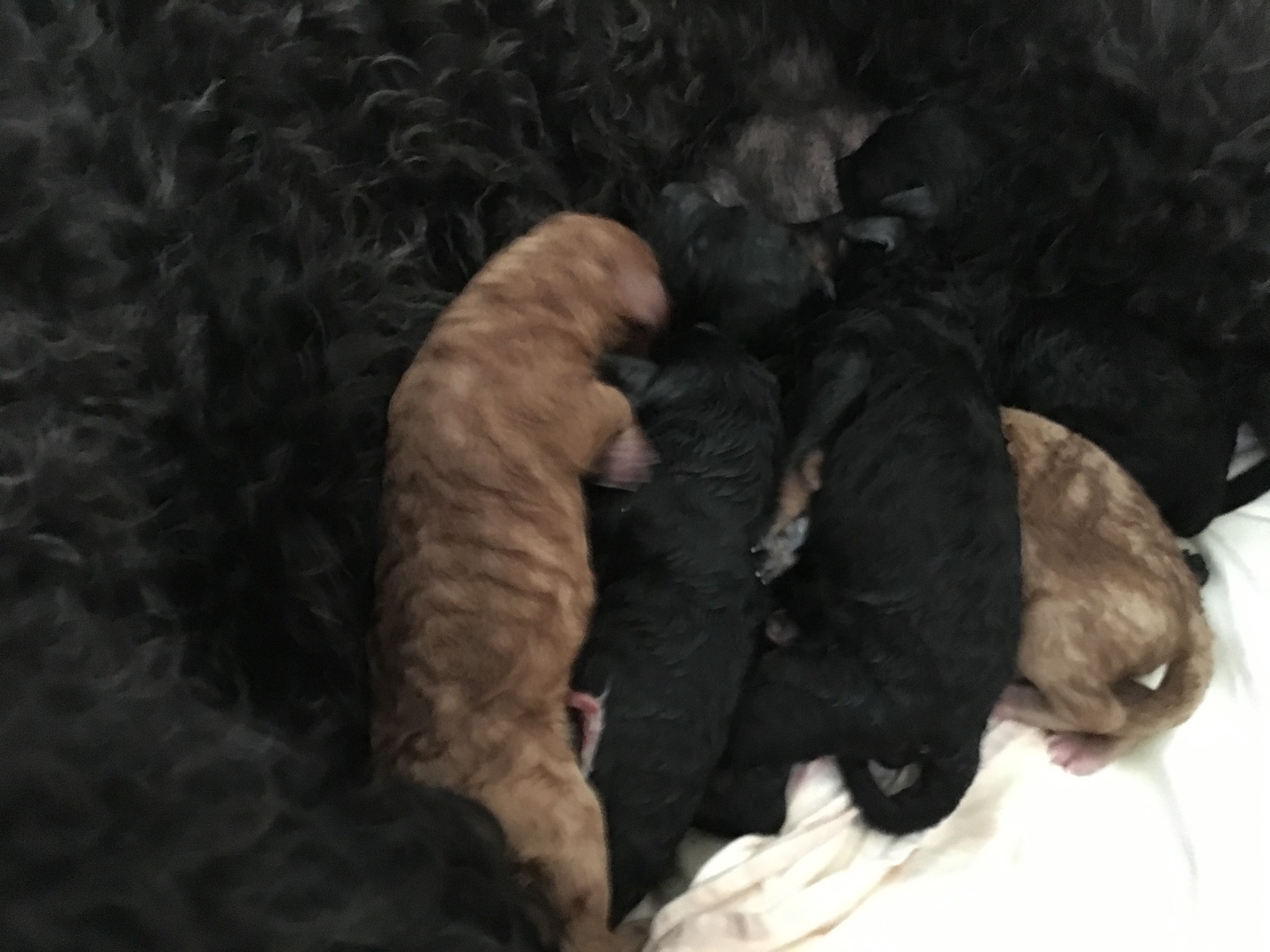 Am 31.10.16 wurden 5 Rüden und 3 Hündinnen geboren, in den Farben apricot (fawn), black & tan (schwarz-loh) und schwarz.