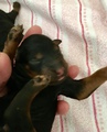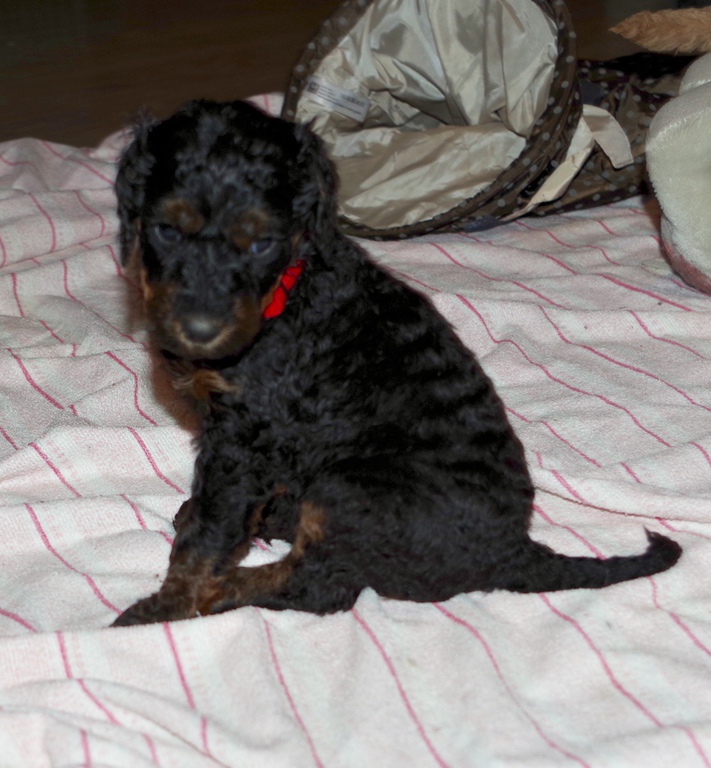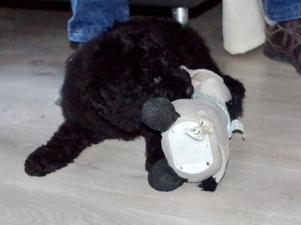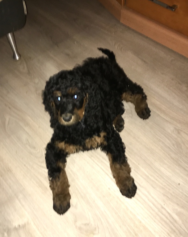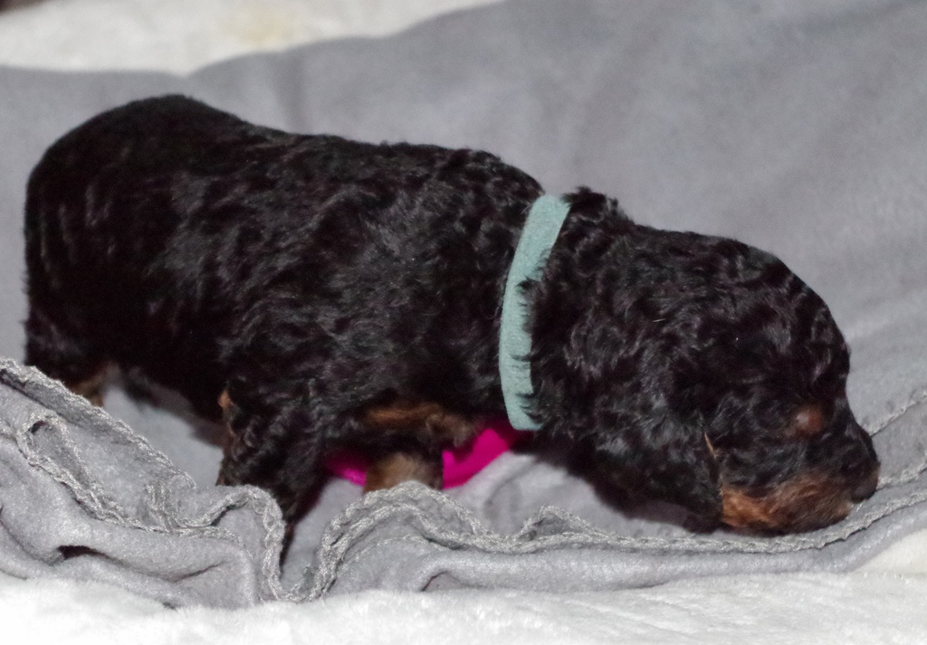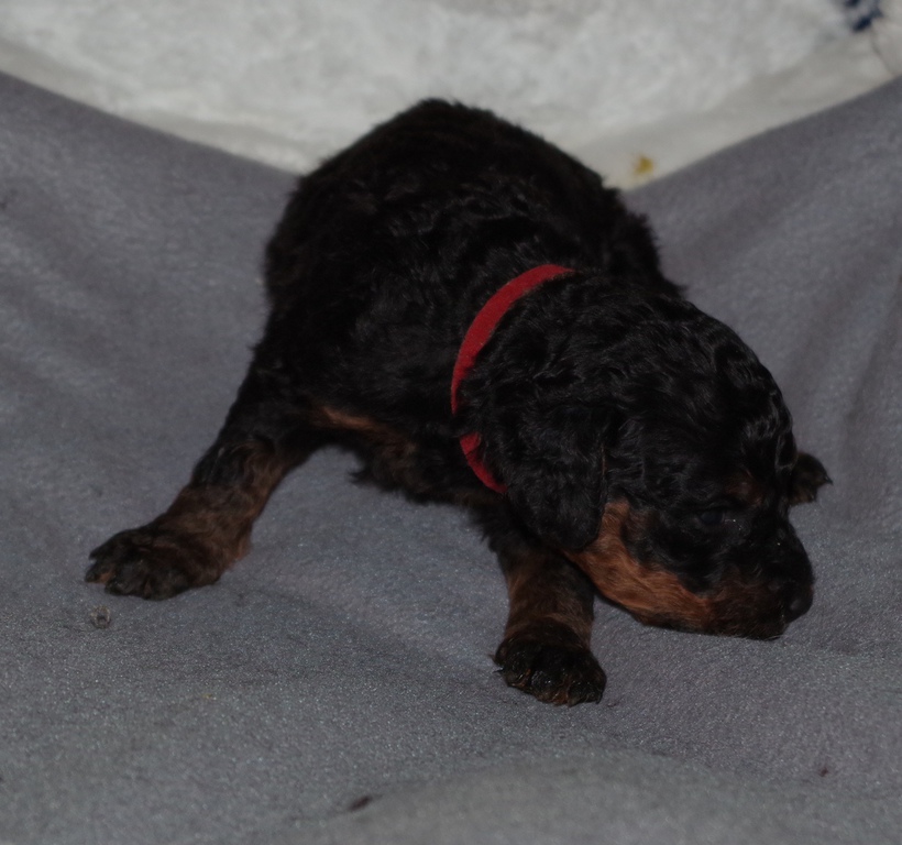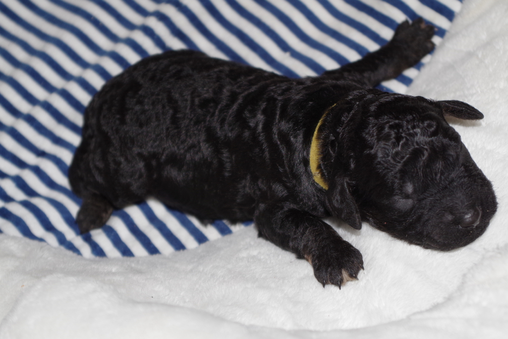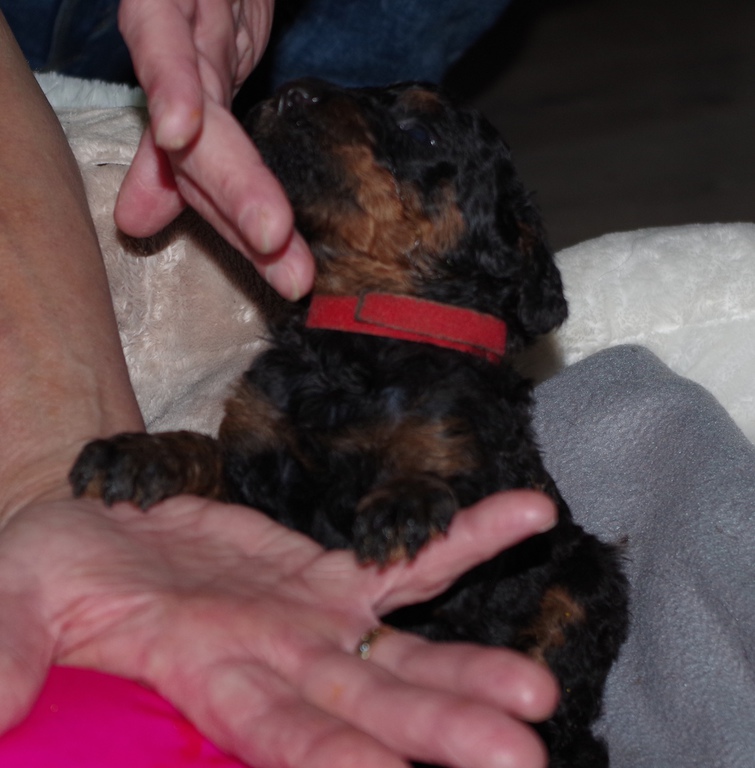 Hündin- gelbes Band (fast schwarz, etwas loh an Vorderpfoten und unter der Rute)