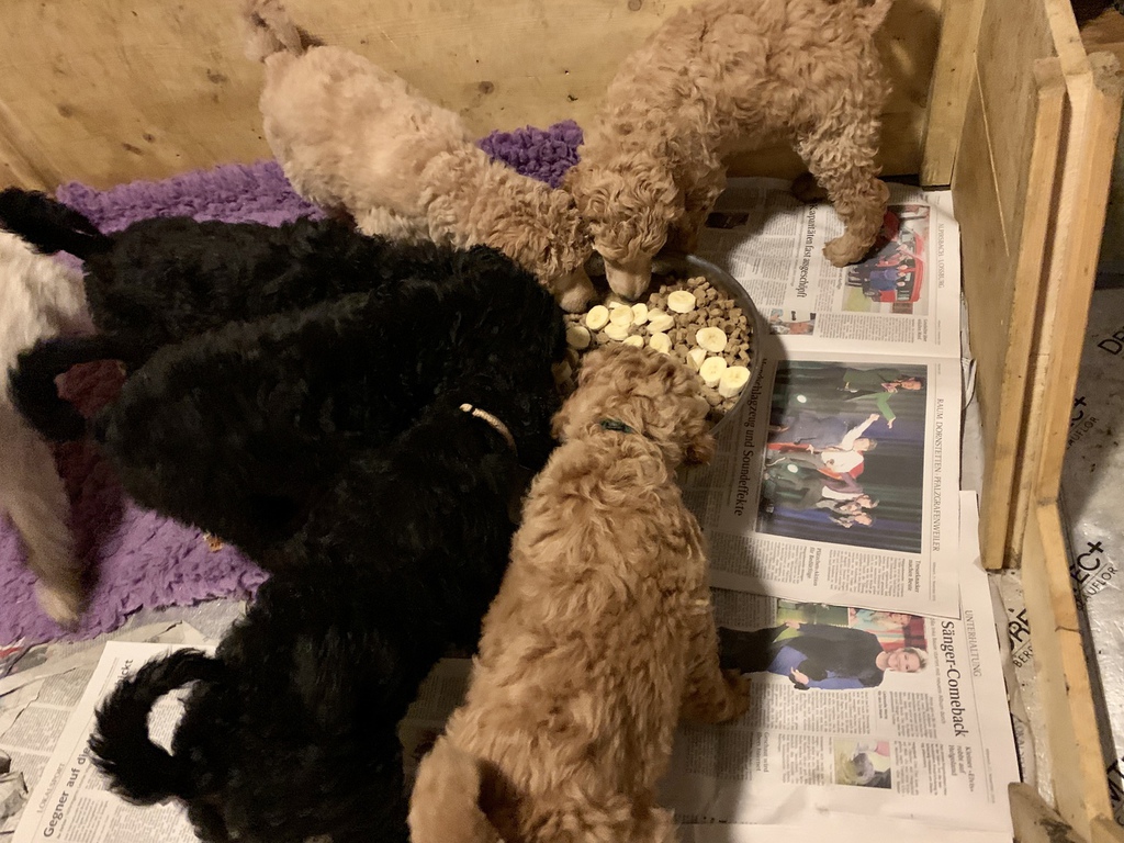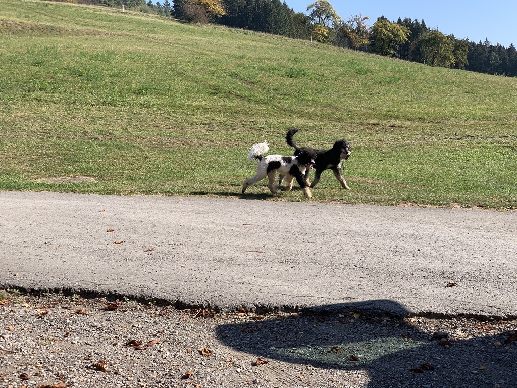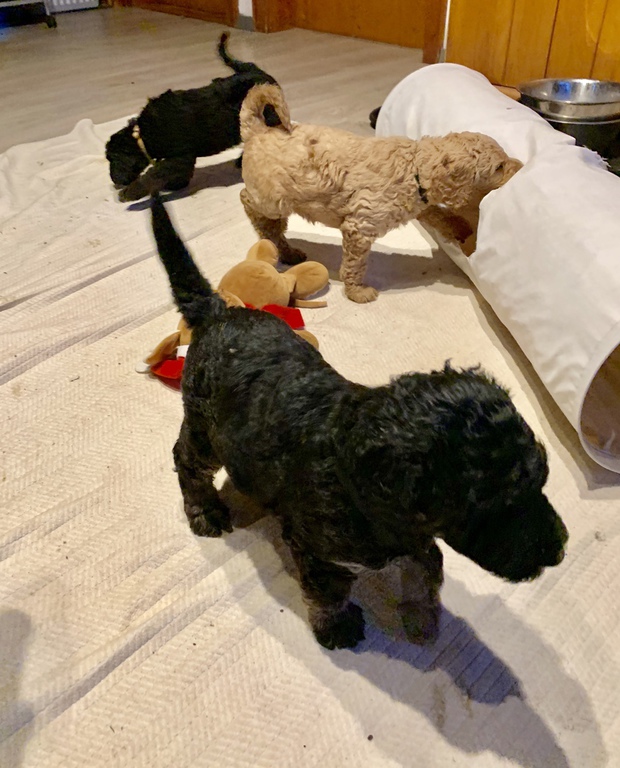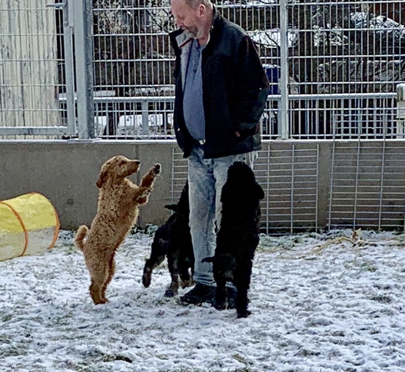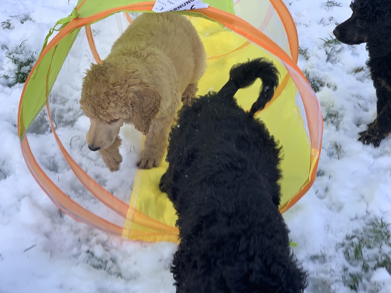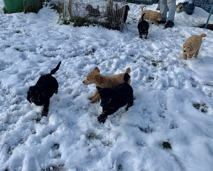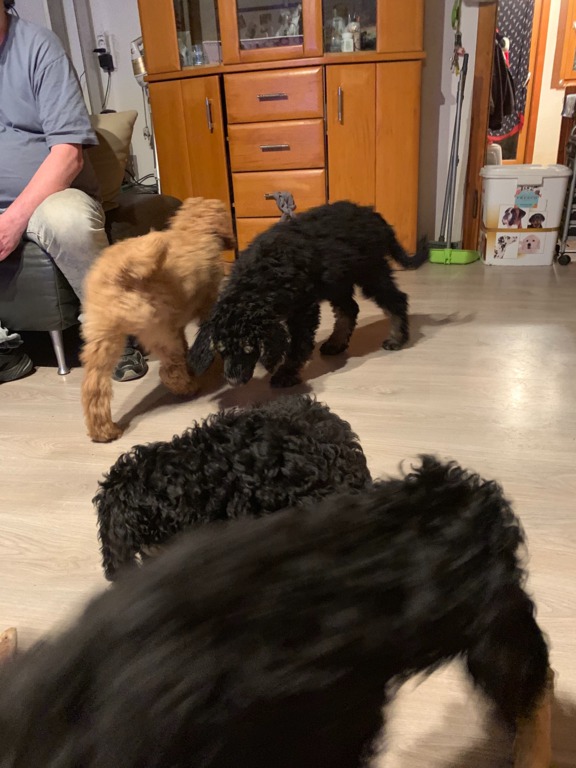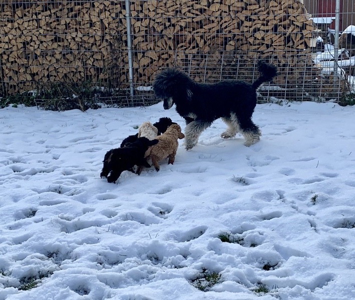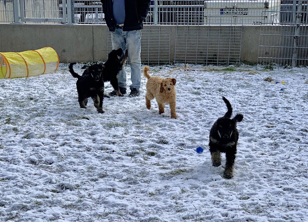 Spielen, fressen, schlafen, sich in Geduld üben beim Baden, ein bisschen scheren, da waren die 3 sehr lieb und geduldig. Ein bisschen Nase einsetzen für Extra‘s und das Kommen auf Pfiff, klappt auch schon ganz gut (liegt wohl dran , das sie danach immer ihr Futter wartet).