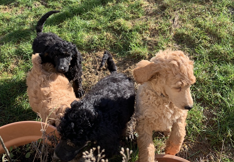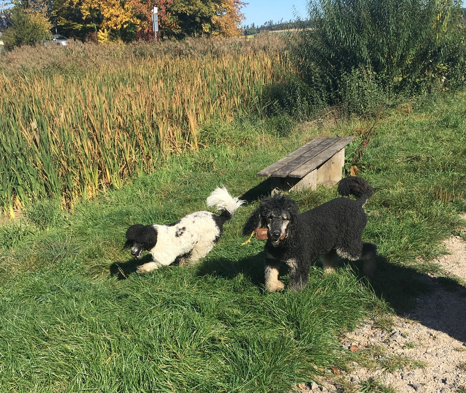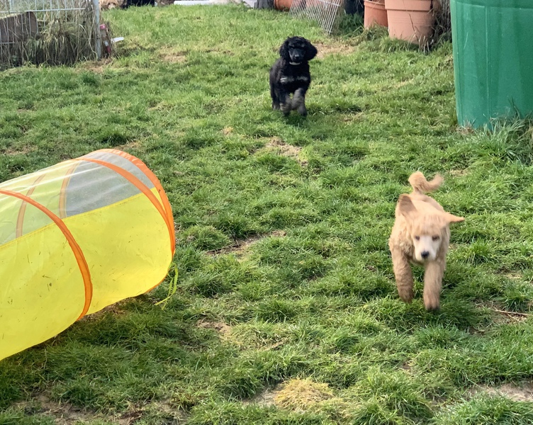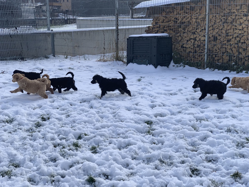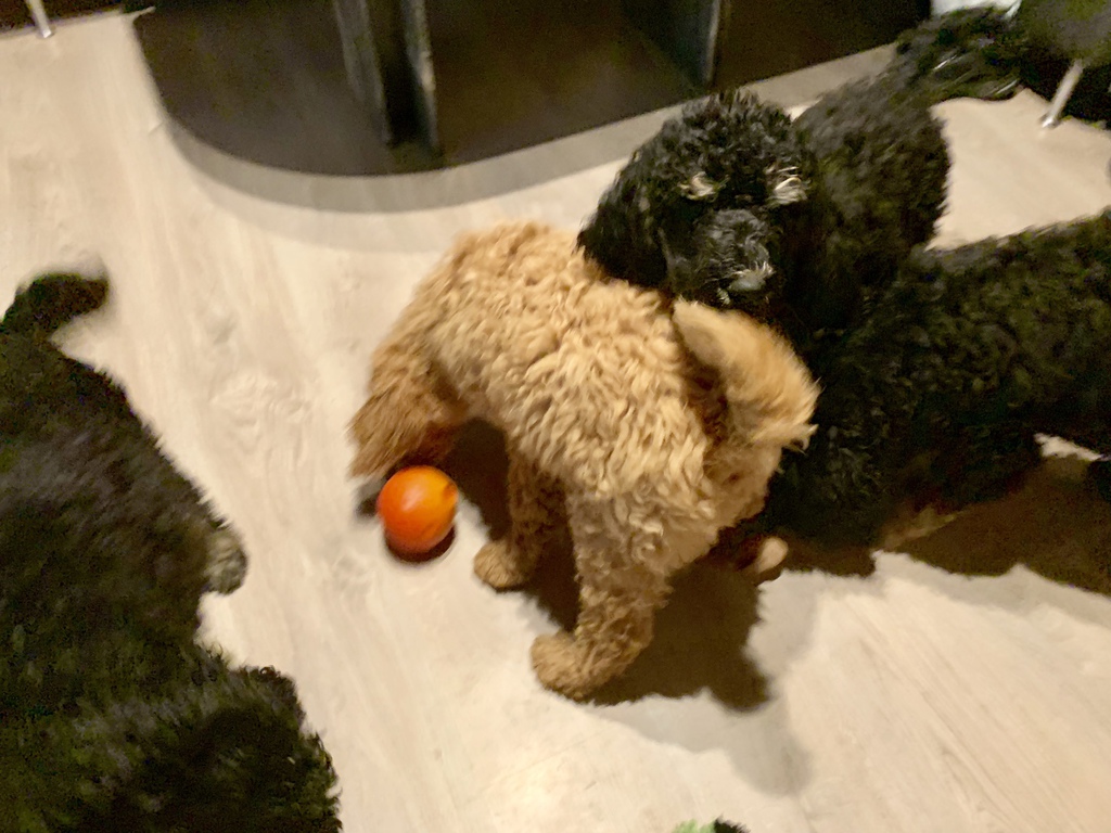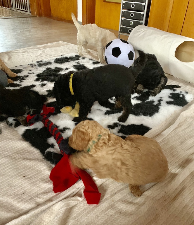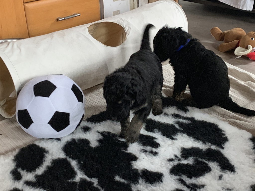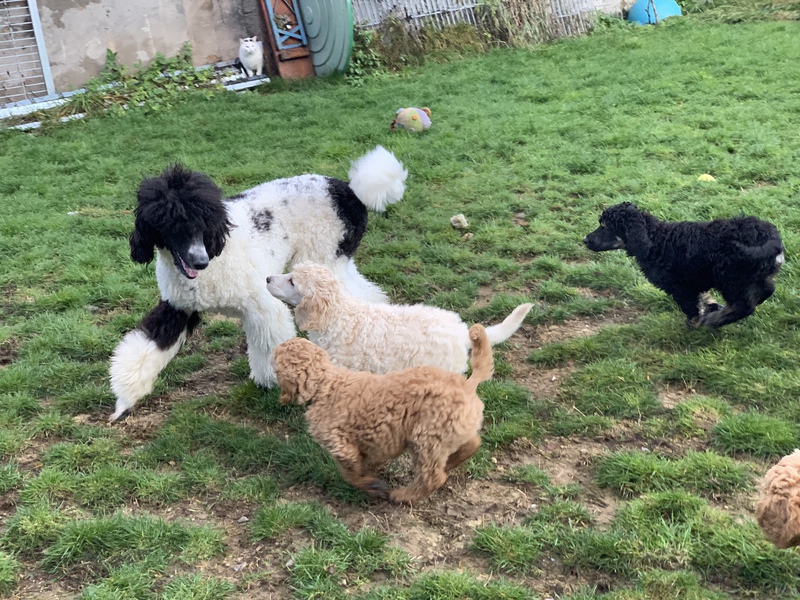 Spielen, fressen, schlafen, sich in Geduld üben beim Baden, ein bisschen scheren, da waren die 3 sehr lieb und geduldig. Ein bisschen Nase einsetzen für Extra‘s und das Kommen auf Pfiff, klappt auch schon ganz gut (liegt wohl dran , das sie danach immer ihr Futter wartet).