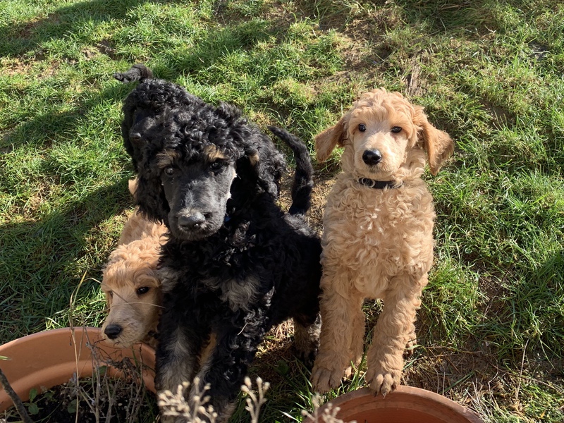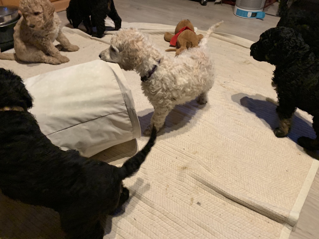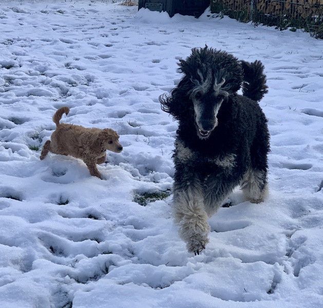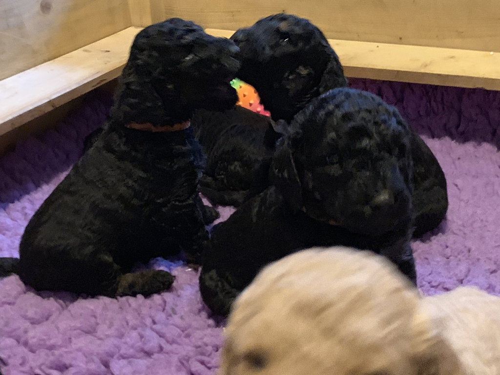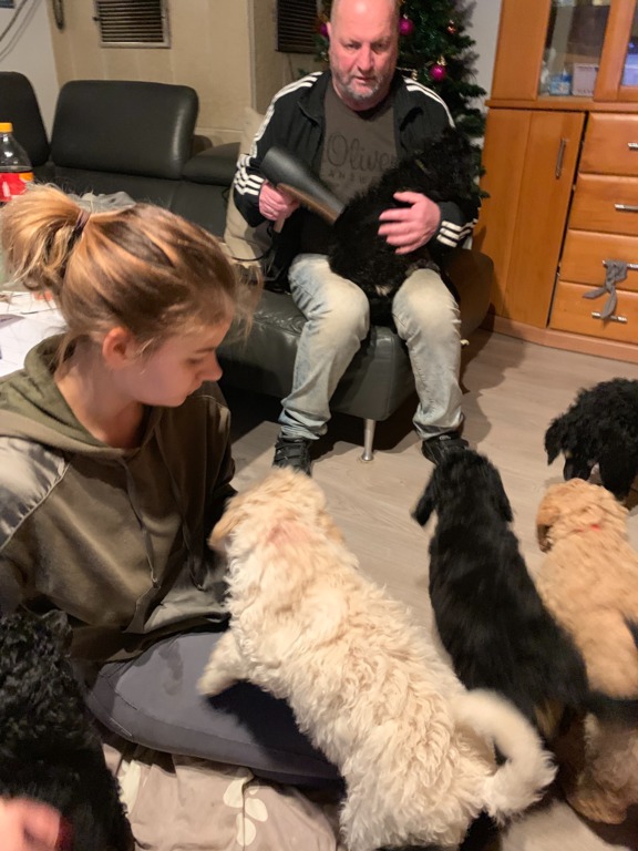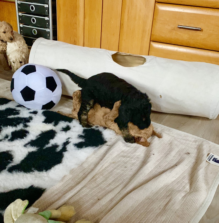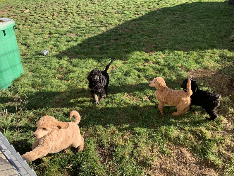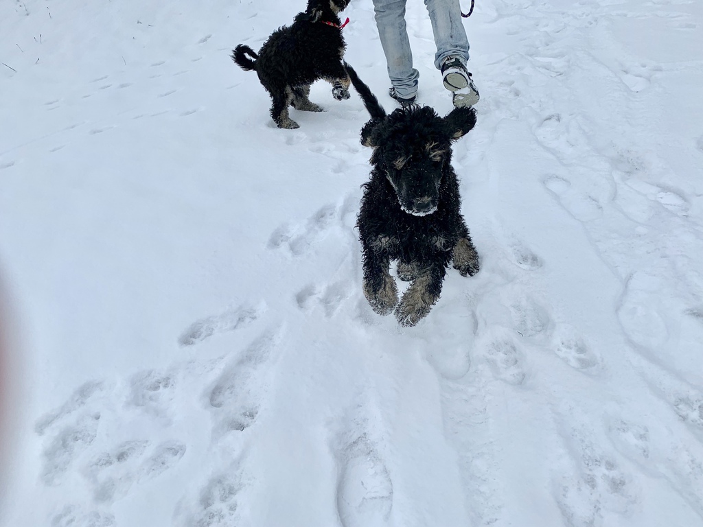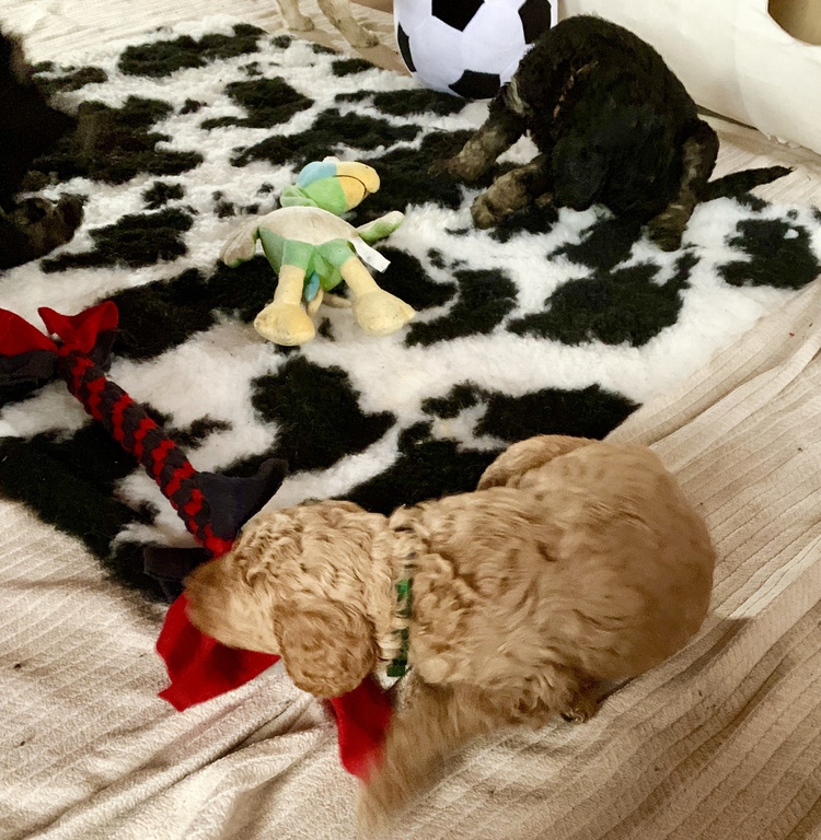 Spielen, fressen, schlafen, sich in Geduld üben beim Baden, ein bisschen scheren, da waren die 3 sehr lieb und geduldig. Ein bisschen Nase einsetzen für Extra‘s und das Kommen auf Pfiff, klappt auch schon ganz gut (liegt wohl dran , das sie danach immer ihr Futter wartet).