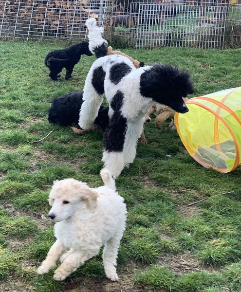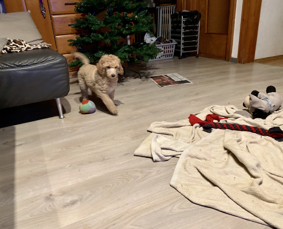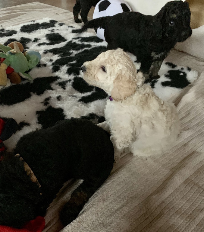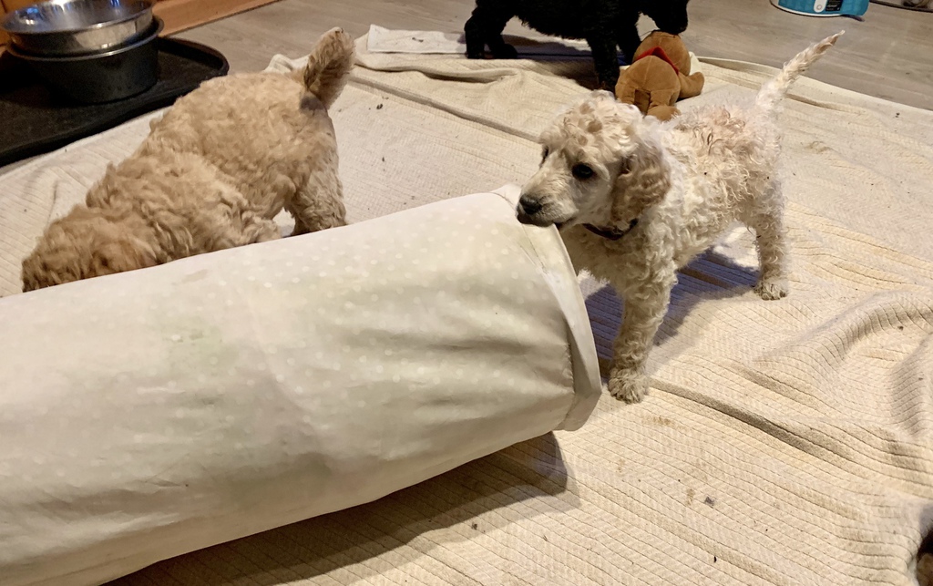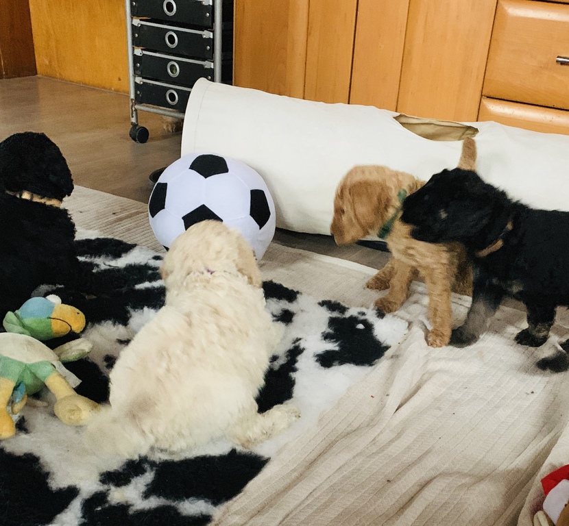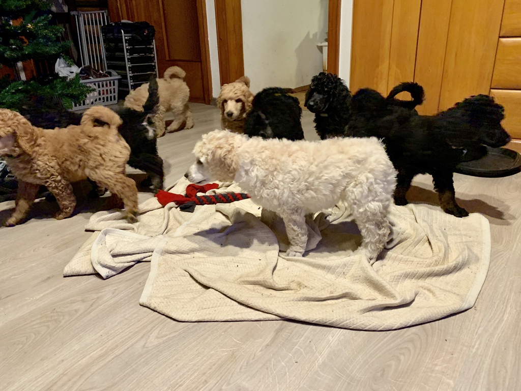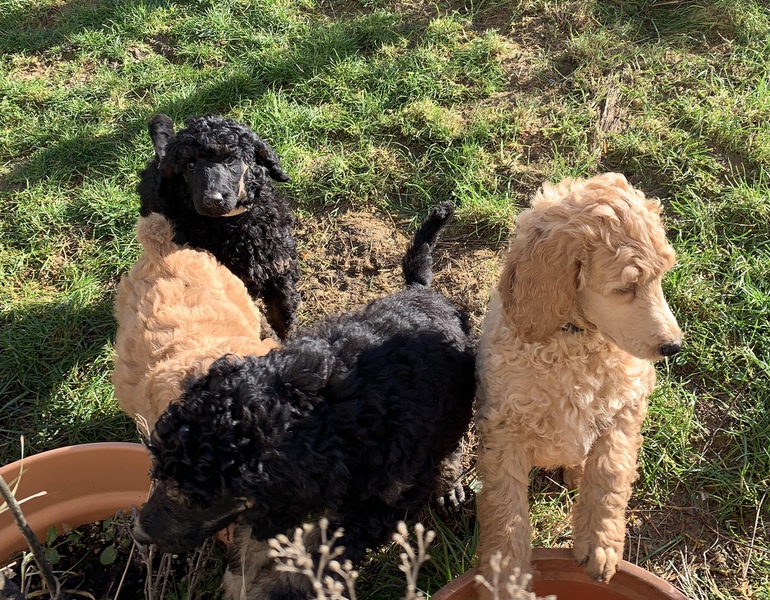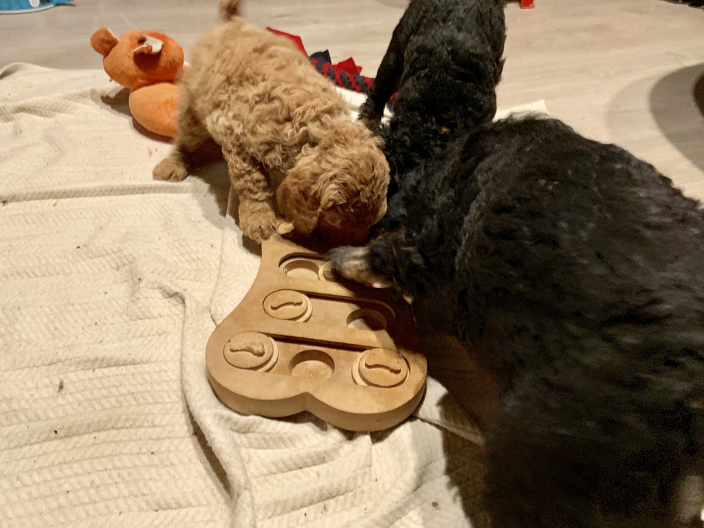 Spielen, fressen, schlafen, sich in Geduld üben beim Baden, ein bisschen scheren, da waren die 3 sehr lieb und geduldig. Ein bisschen Nase einsetzen für Extra‘s und das Kommen auf Pfiff, klappt auch schon ganz gut (liegt wohl dran , das sie danach immer ihr Futter wartet).