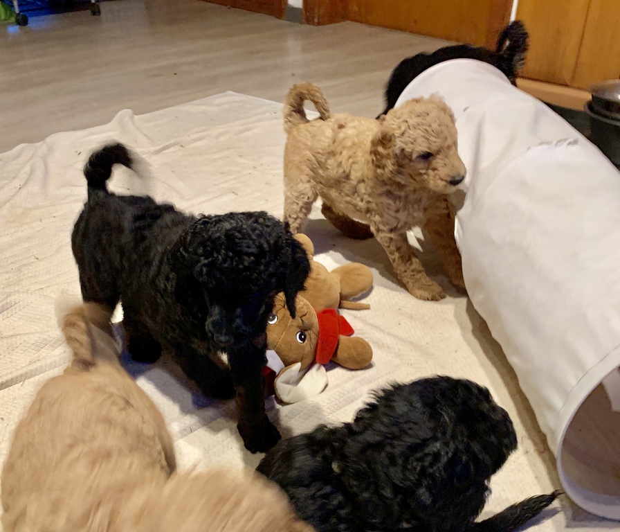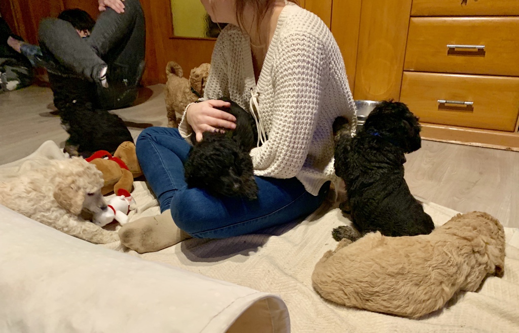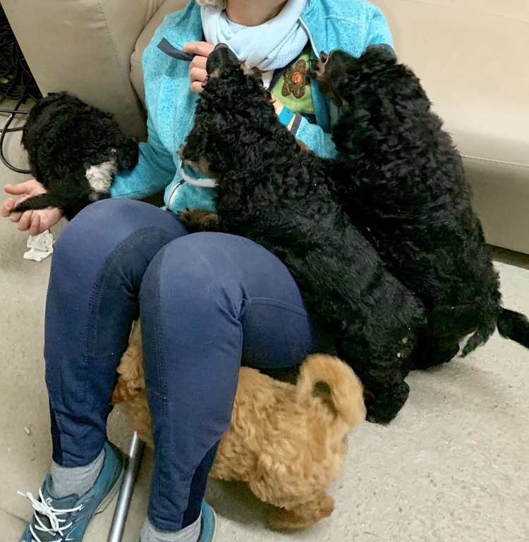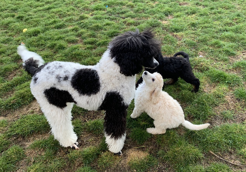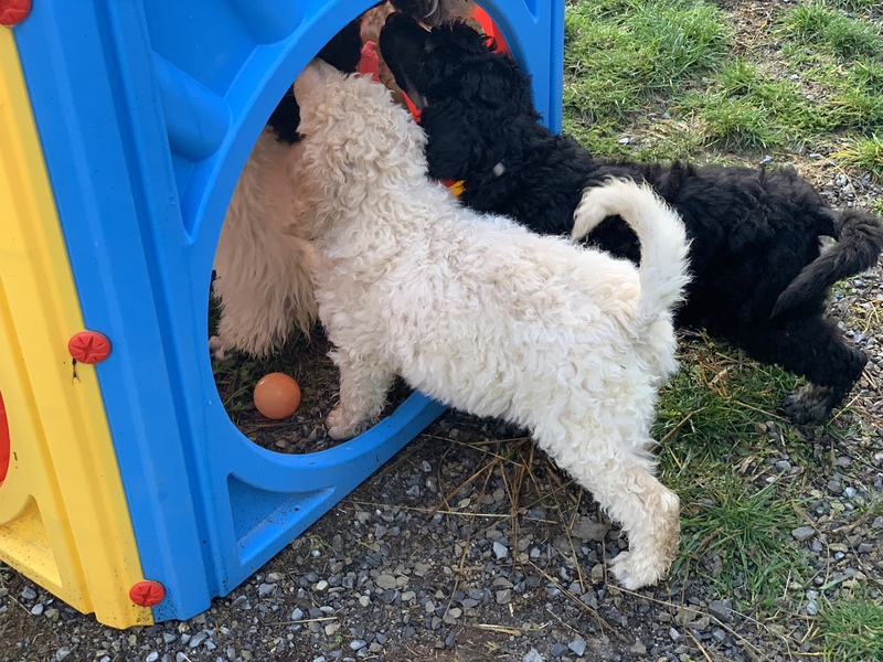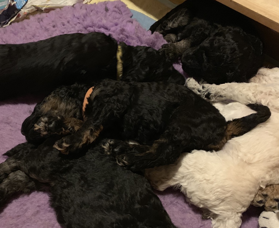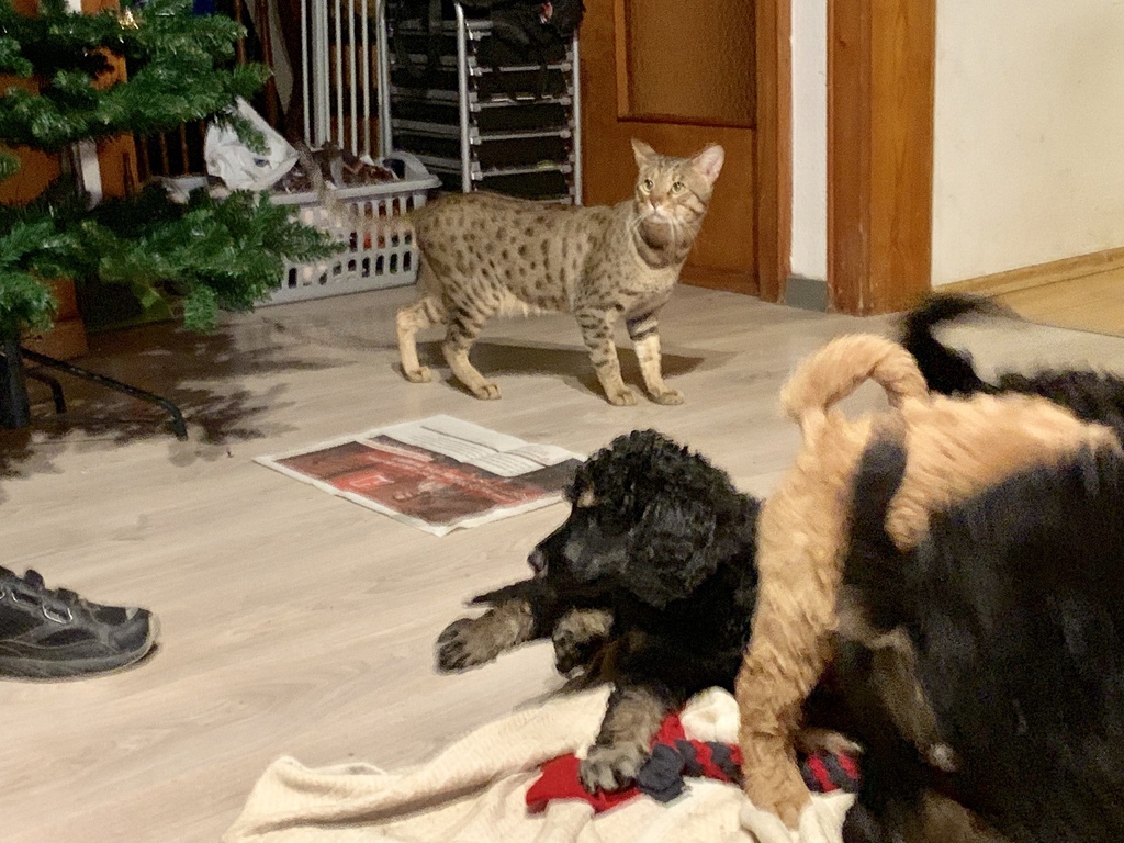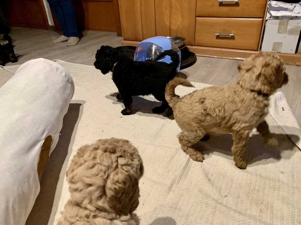 Spielen, fressen, schlafen, sich in Geduld üben beim Baden, ein bisschen scheren, da waren die 3 sehr lieb und geduldig. Ein bisschen Nase einsetzen für Extra‘s und das Kommen auf Pfiff, klappt auch schon ganz gut (liegt wohl dran , das sie danach immer ihr Futter wartet).