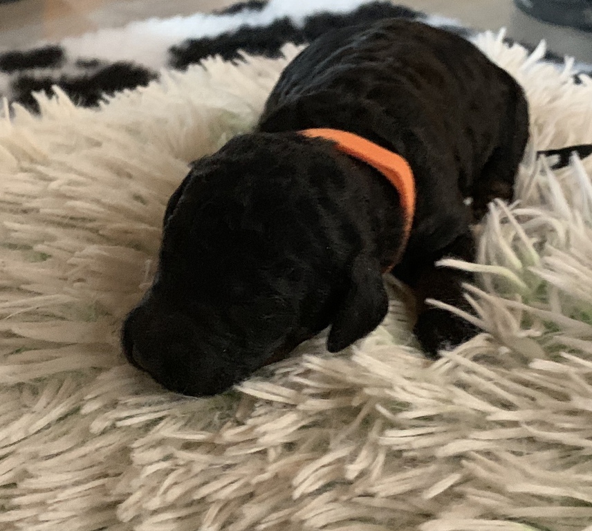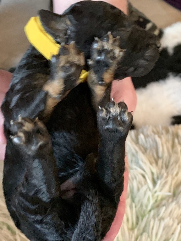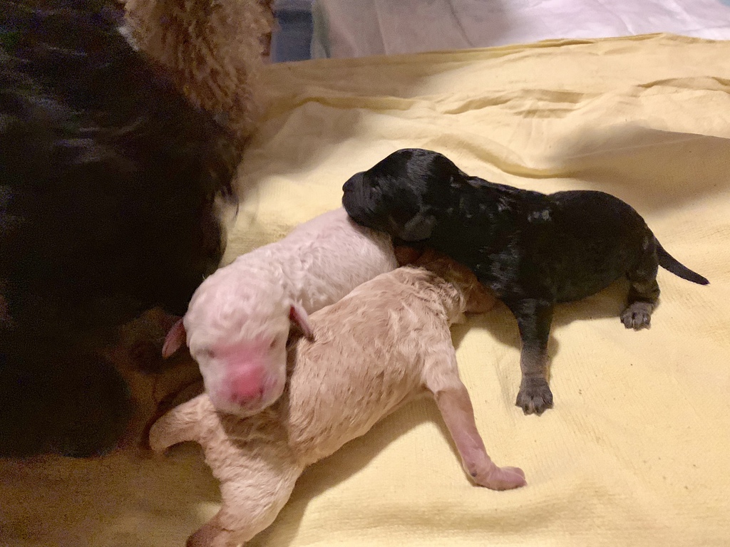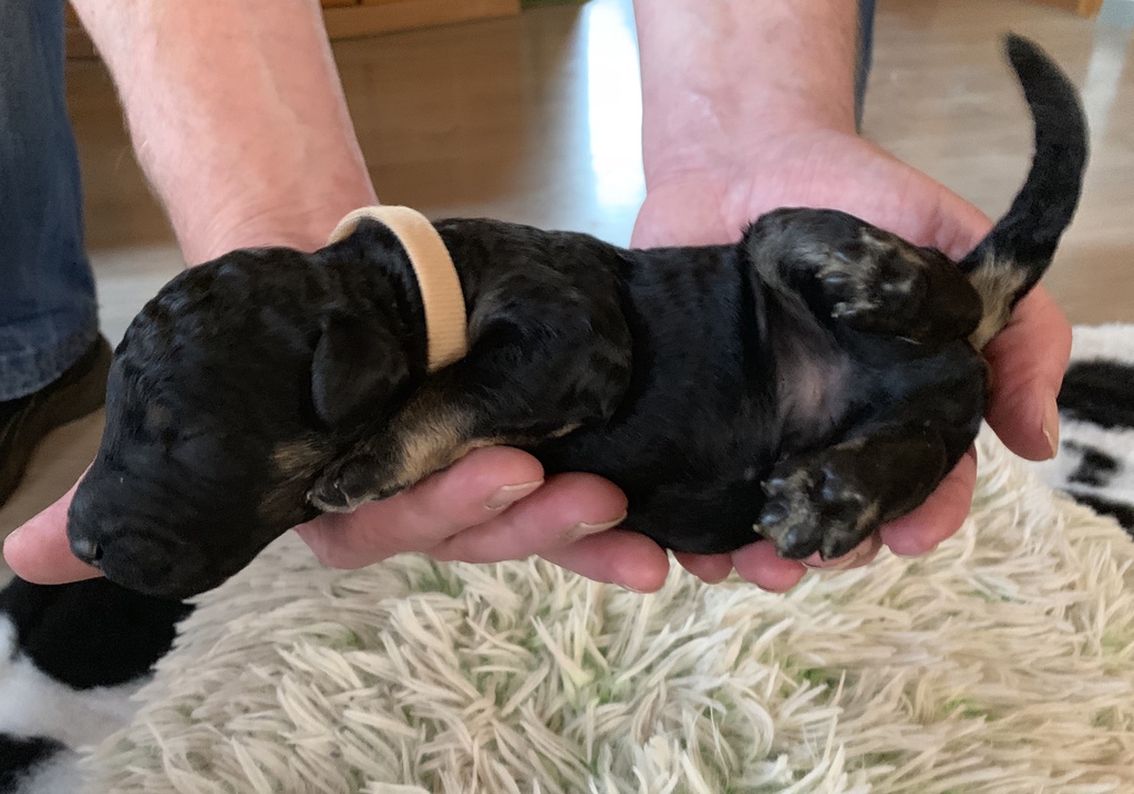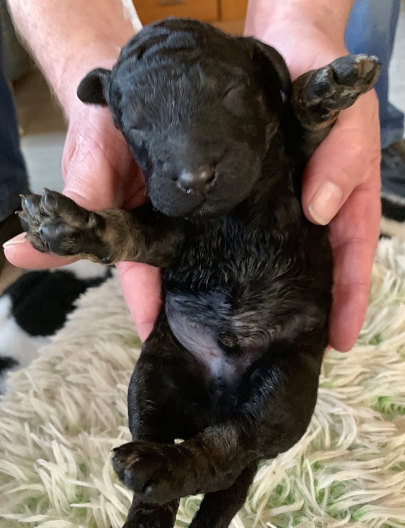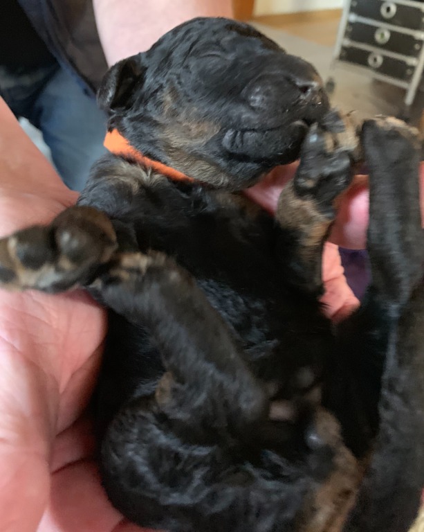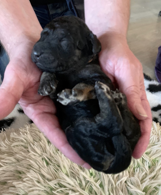 Es sind 4 fawnfarbene und 5 black and tan. 8:20 Uhr begann die Geburt, 11:20 Uhr waren alle 9 da .