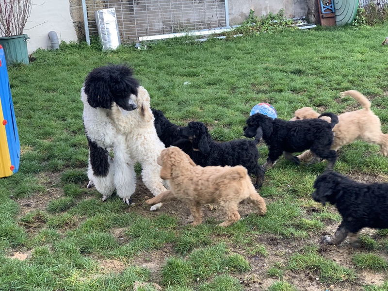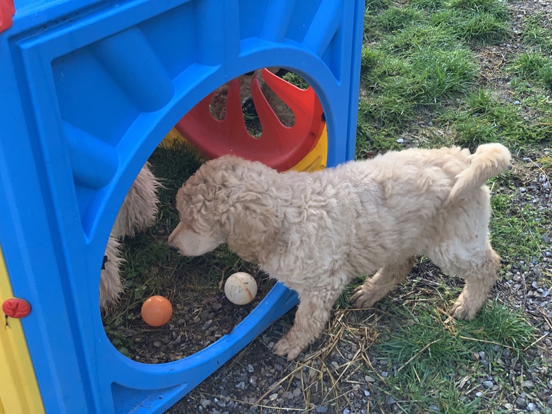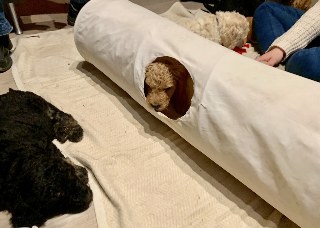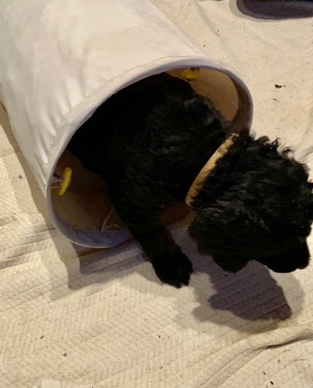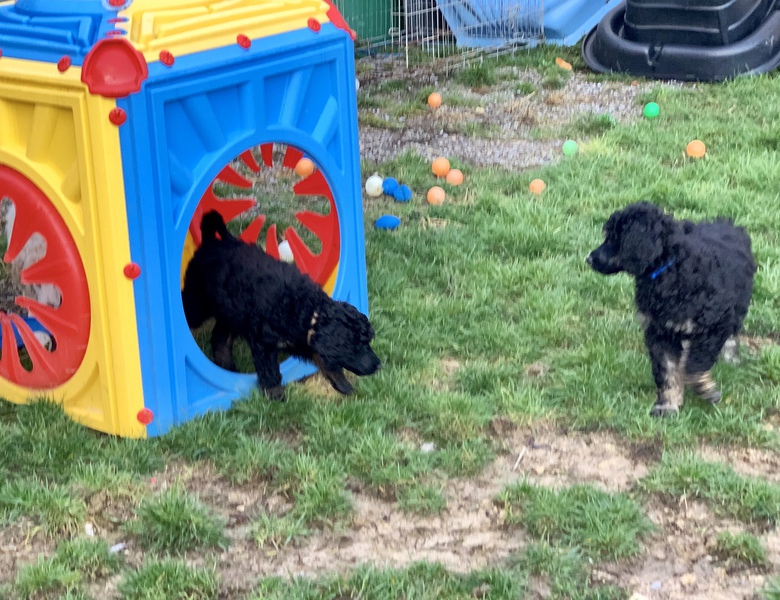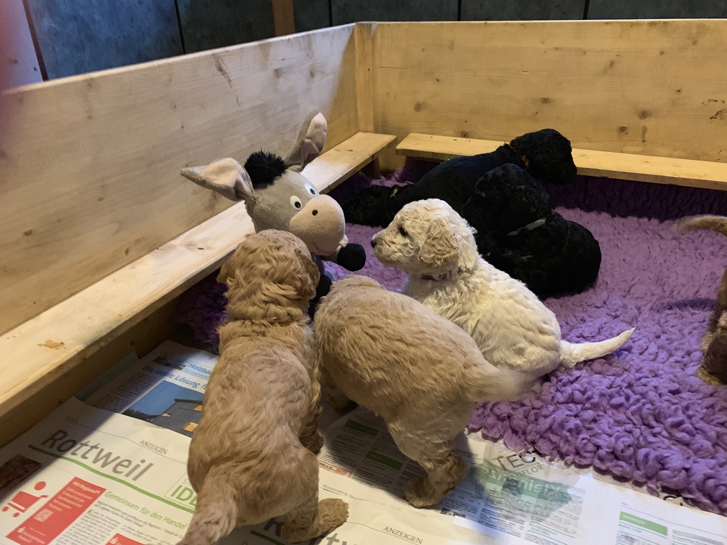Die „Welpennanny“ Roxy liebt die Kleinen, Blech, das Krach macht und mehr, stehen natürlich auch auf dem Programm, Impfung und Chip setzen haben sie auch ganz toll geschafft.