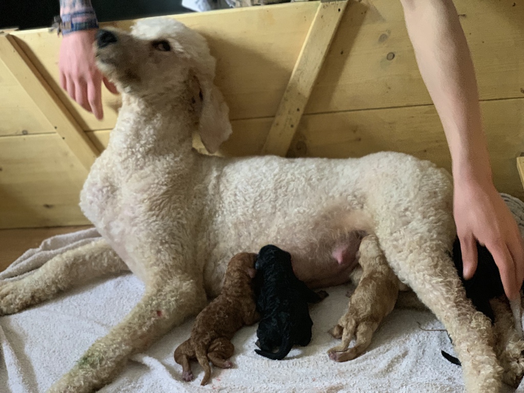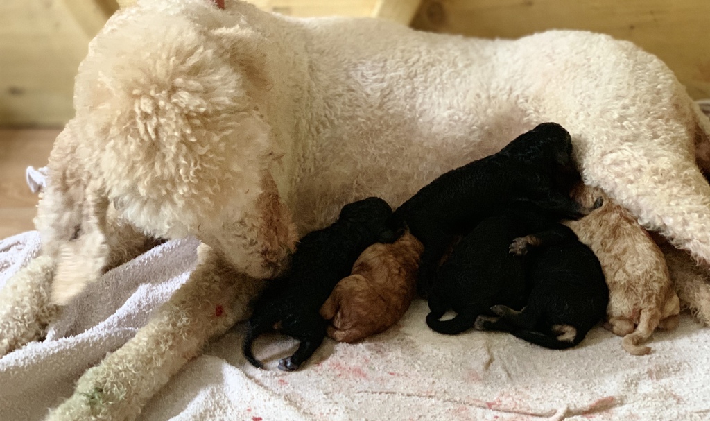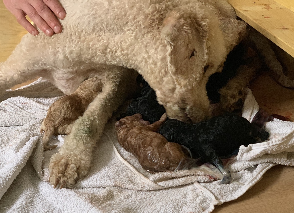 2 Mädels in der Farbe schwarz/loh, 3 Buben in schwarz/loh, sowie 3 Buben in Fawn erblickten innerhalb kürzester Zeit die Welt. Ihre Mama hatte es etwas eilig, die Kleinen Untermieter persönlich zu sehen, so kam die 1. 10:30 Uhr und der Letzte 12:16 Uhr zur Welt